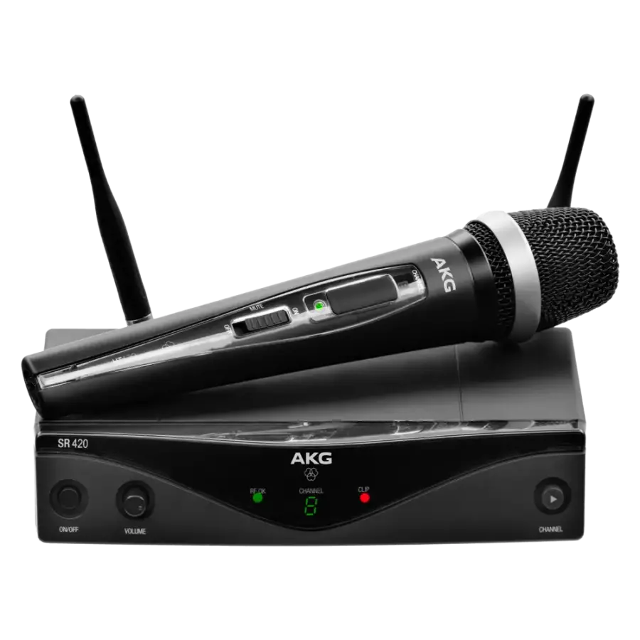 WMS420, istenmeyen gürültüyü önlemek için pilot ton iletimine sahip profesyonel bir çok kanallı kablosuz mikrofon sistemidir. Vokal Seti, dengeli ve güçlü ses için patentli son teknoloji D5 dinamik kapsüle sahip bir HT420 el tipi verici içerir. Alan çeşitliliği alıcısı hem mikrofon seviyesi hem de hat seviyesi çıkışı sunar.