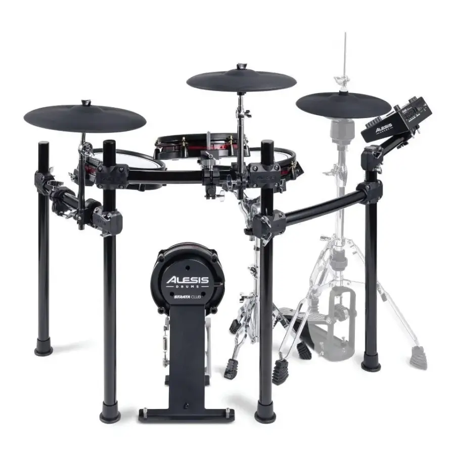 Alesis Strata Club, kompakt tasarımı ve Bluetooth 5.0 desteğiyle egzersiz, performans veya stüdyo çalışmalarınızı geliştirmek için idealdir. Strata Club, bir adet 8 inç kick davul kulesi, bir adet 12 inç çift bölgeli trampet pedi, iki adet 10 inç çift bölgeli tom pedi, manyetik kontrolcülü bir adet 12 inç ARC üç bölgeli hi-hat pedi, bir adet 12 inç üç bölgeli crash zil pedi ve bir adet 14 inç üç bölgeli crash/ride zil pedinden oluşur. Tüm ziller, doğal çalım ve şok desteği için 360° algılama özelliğine sahipken, tüm davul pedleri organik geri tepme ve konfor için yüksek kaliteli, gerilimi ayarlanabilir file başlıklara sahiptir. Strata Club ayrıca 4 direkli çelik davul rafı, trampet sehpası, davul modülü yuvası, güç adaptörü, davul anahtarı ve montaj için gerekli tüm vidaları içerir.