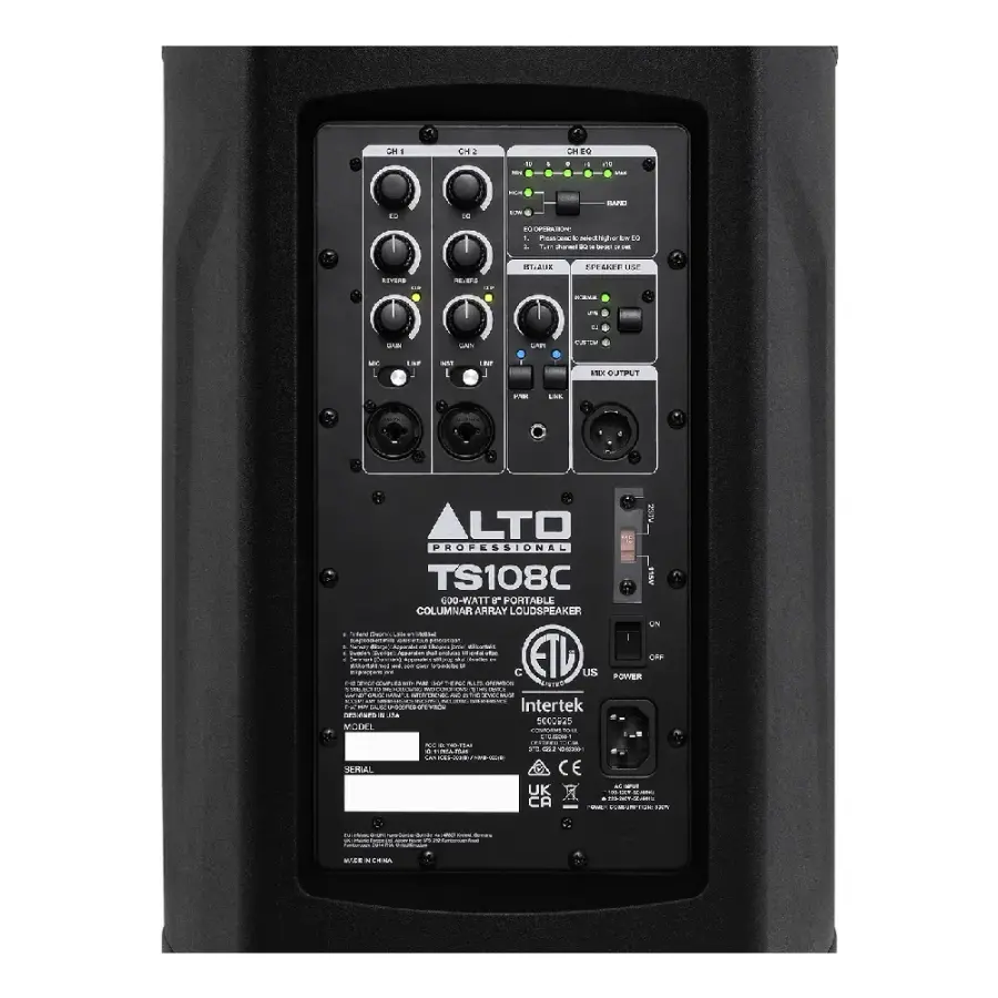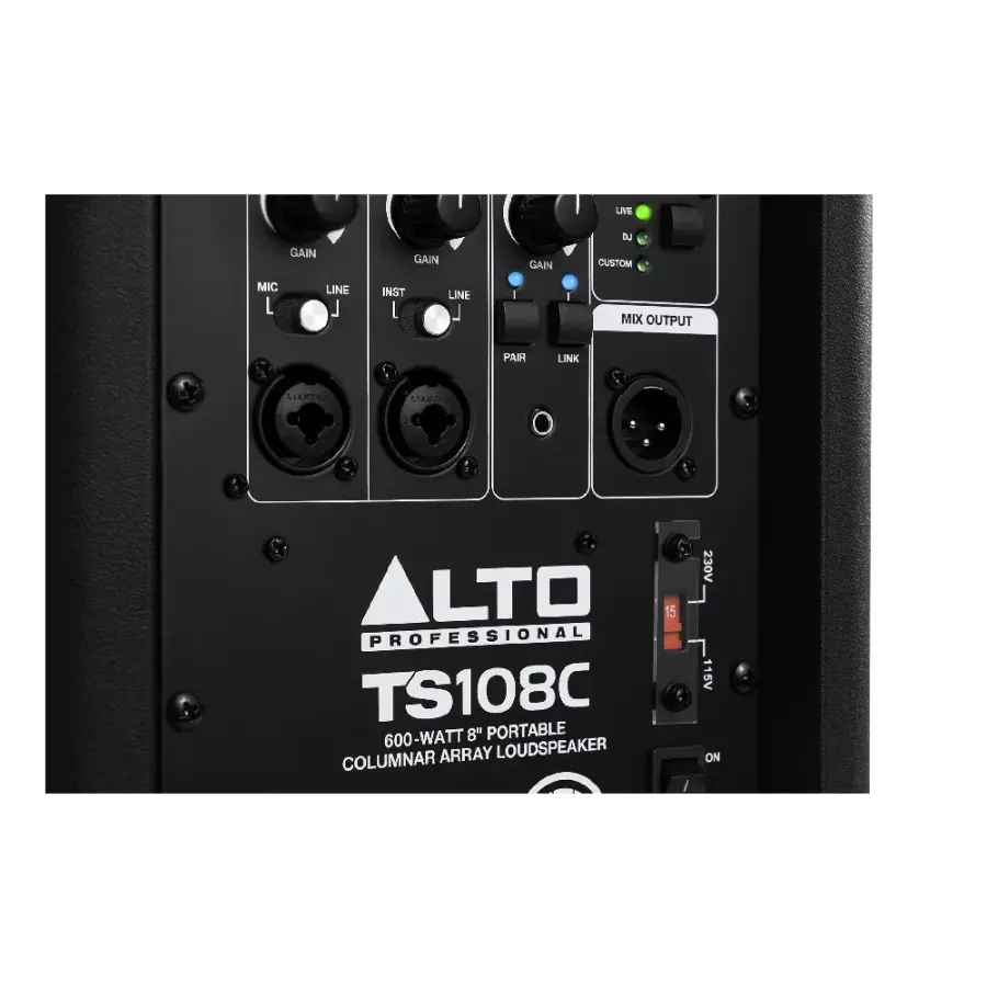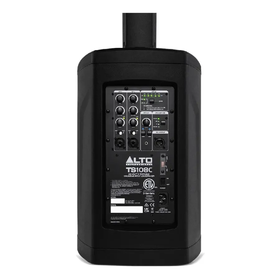Alto Professional TS108C, kompakt kolon tipi line array yapısı ile taşınabilirlik ve net ses performansını bir araya getiren profesyonel bir PA hoparlör sistemidir. Küçük ve orta ölçekli etkinlikler, sunumlar, canlı performanslar ve mobil kullanım senaryoları için tasarlanan bu model, tek bir sistemle dengeli ve kontrollü bir ses yayılımı sunar.