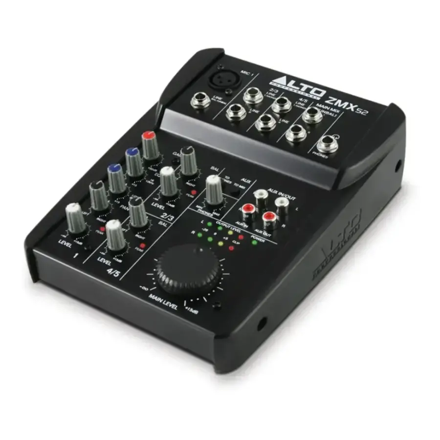 Alto Professional Zephyr ZMX52, kompakt yapısına rağmen profesyonel ses uygulamaları için gerekli tüm temel giriş, çıkış ve kontrol olanaklarını sunan 5 kanallı analog bir mikserdir. Solo performanslar, küçük canlı etkinlikler, ev stüdyoları, multimedya uygulamaları ve mobil kayıt senaryoları için tasarlanan bu model, taşınabilirlik ve güvenilir ses kalitesini bir araya getirir.