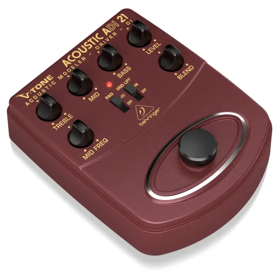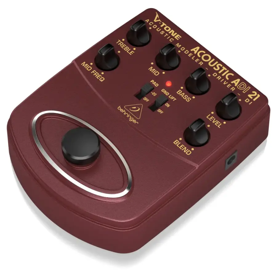 Piezo manyetiklerin doğası gereği oldukça parlak bir ses profiline sahip olması ve bass tepkisinin ve sıcaklığının bir miktar azalması beklenir. ADI21, aktif bir DI kutusunun özelliklerini, özel mikrofon/tüp emülasyonu ile birleştirir. Blend kontrolü, modelleme tonu ile enstrümanınızın normal çıkışını karıştırmanıza imkan tanır. Sonuç olarak, ses daha doğal ve yumuşak bir doygunlukla elde edilir; sanki gitarınız büyük bir açık alanda mikrofonla kaydediliyormuş gibi.