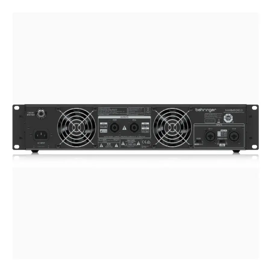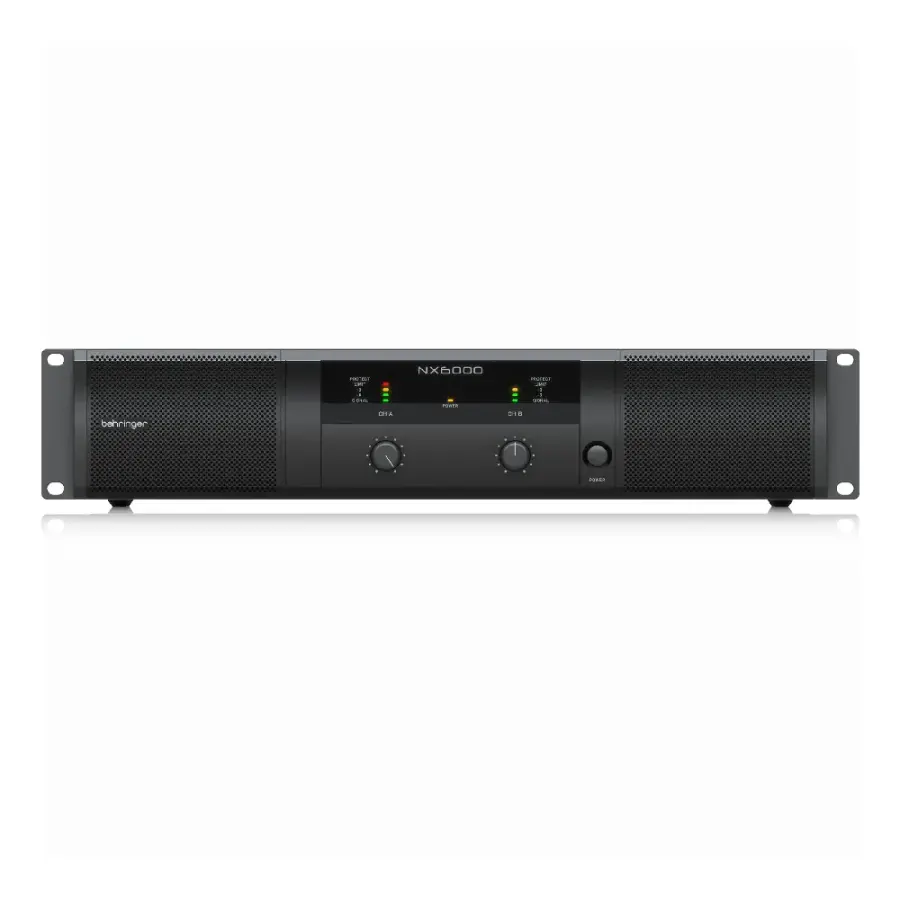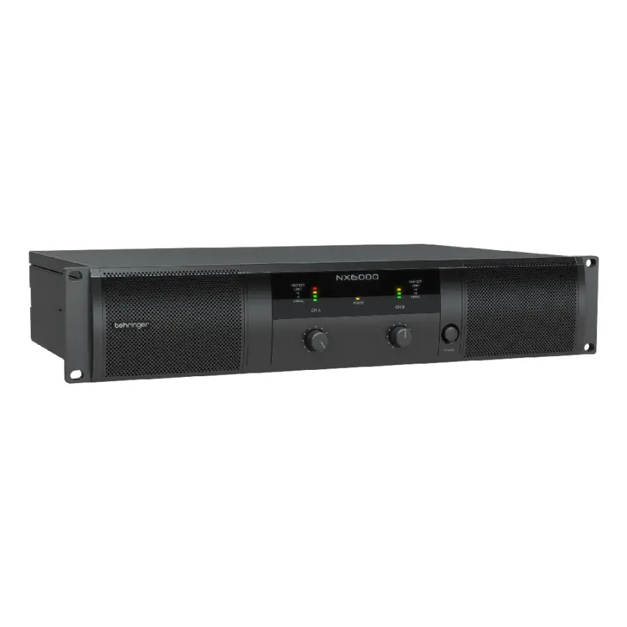 The Behringer NX6000 Power Amplifier packs a powerful 6000 watts into an exceptionally light-weight and rack-mountable package. You'll be provided with an amplifier which runs far more efficiently than conventional designs. This is because the NX6000 does not require the massive heat sinks and heavy toroid transformers associated with similar models. You'll be guaranteed maximum output level with exceptionally reliable overload protection thanks to the NX6000's "zero-attack" limiters. With revolutionary high-density Class D technology and an ultra switch mode power supply this ultra-lightweight workhorse will drive your rig effortlessly for many years.