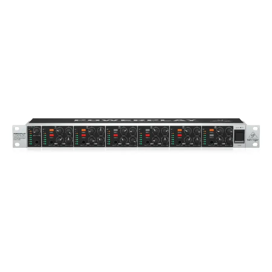 Does your project studio need a headphone amplifier? If so, you'll be hard-pressed to find a better bang-for-your-buck value than Behringer's Powerplay HA6000. The Powerplay HA6000 features six independent amplifier sections that provide up to six stereo mixes with individual Balance controls. You can adjust each section separately for "more me" mixing, and stereo auxiliary inputs for each channel make adding in any extra sound source easy. Beyond that, you can customize your individual mix, thanks to a Bass and Treble EQ on each channel. Each channel on the Powerplay HA6000 also boasts an Output Level control with 8-segment LED meter, Mono L/Mono R switches, and dual headphone outputs.