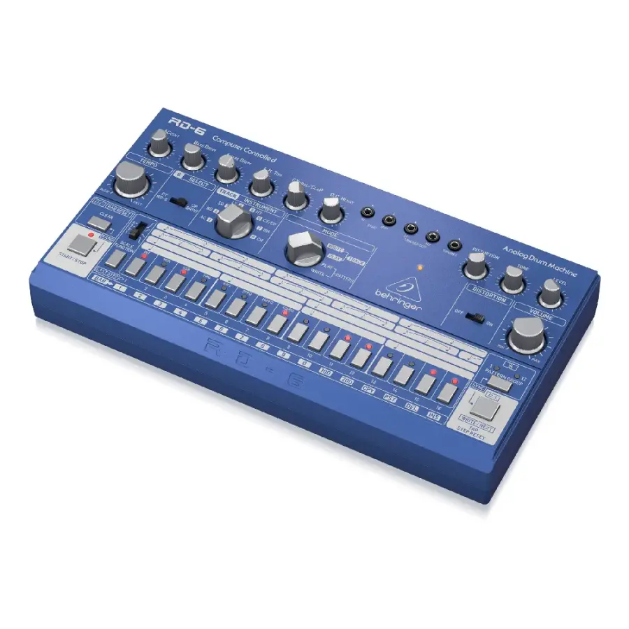 Gelince Haber VerBehringer RD-6-BU Analog Drum Machine, efsanevi Roland TR-606’nın ruhunu günümüze taşıyan güçlü bir ritim makinesidir. 8 orijinal analog davul sesi, otantik DR-110 clap sesi, 16 adımlı sequencer, 32 pattern desteği ve RAT tarzı distortion devresi ile klasik analog davul makinesinin karakterini modern prodüksiyonlarda yeniden canlandırır.