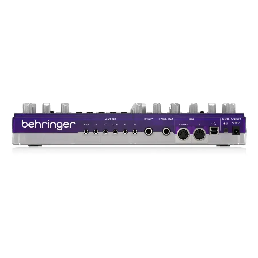 - 8 analog drum voices include bass drum, snare drum, low and high toms, cymbal, clap, and open and closed hi-hats