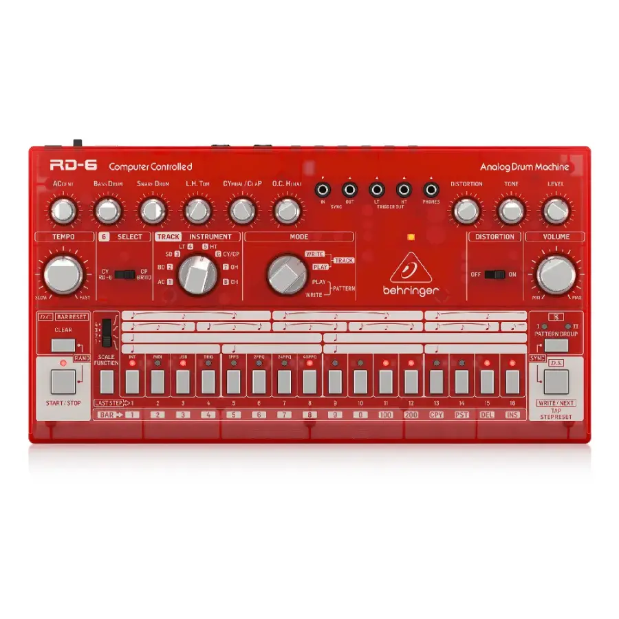 Loaded with eight analog drum voices derived from the classic 606 drum machine, the Behringer RD-6 analog drum machine combines iconic '80s drum machine sounds with modern USB and MIDI connectivity. Use the 16-step drum sequencer to create your grooves, with seamless real-time switching between up to 32 patterns. For longer sequences, you can chain patterns into full songs with up to 250 bars. And with trigger outputs to control your other modular and semi-modular synthesizers, the Behringer RD-6 is the perfect way to bring old-school analog drum sounds into your modern synthesizer rig.