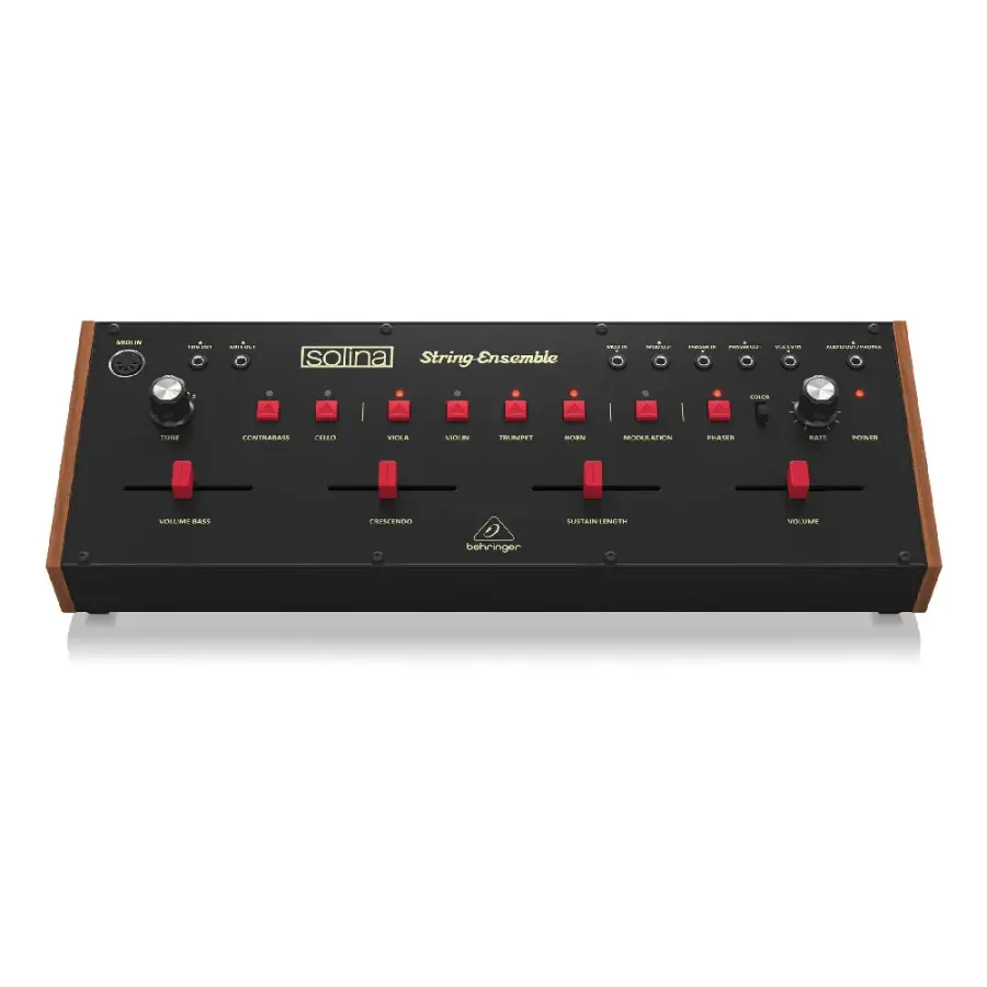 Gelince Haber VerBehringer Solina String Ensemble Analog Synthesizer, 1970’lerin efsanevi ARP/Eminent Solina MK II devrelerini aslına uygun şekilde yeniden üreterek klasik yaylı seslerini günümüze taşıyor. Özellikle retro müzik prodüksiyonları, sahne performansları ve stüdyo kayıtları için tasarlanan bu synthesizer, keman, viyola, trompet, korno, çello ve kontrbas gibi yaylı ve bakır nefesli tonlarını analog sıcaklıkla sunar.