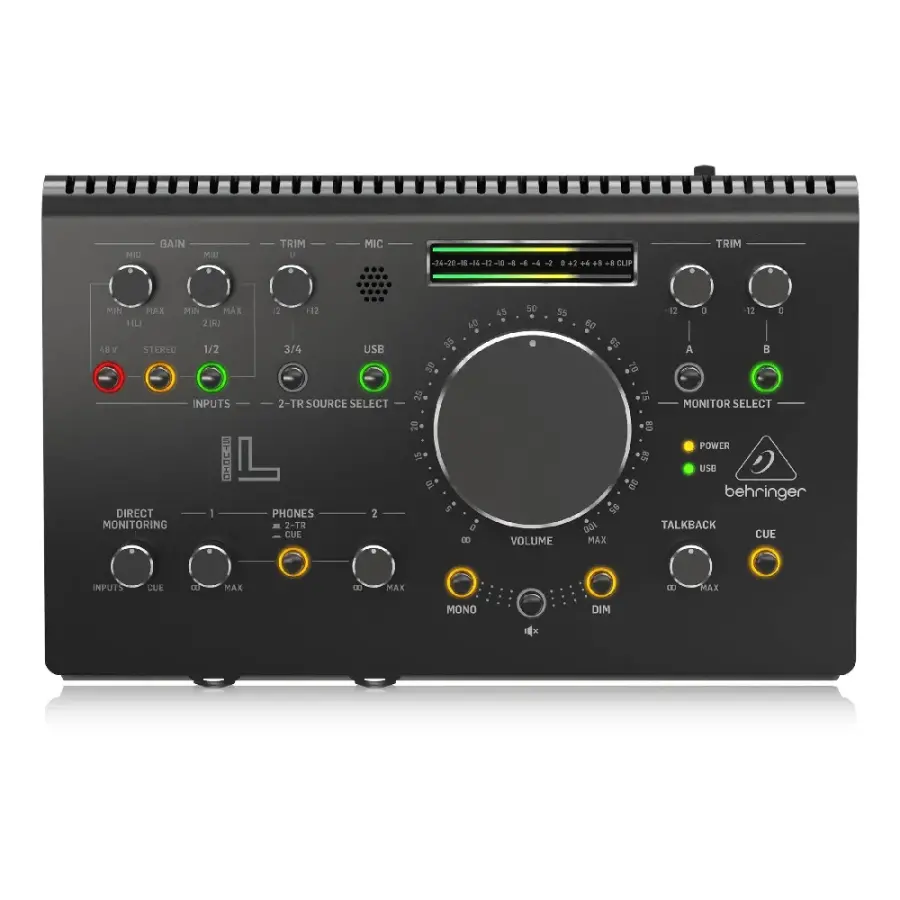 Gelince Haber VerBehringer STUDIO L, profesyonel ve ev stüdyoları için geliştirilmiş, üst düzey bir stüdyo kontrol ünitesi ve iletişim çözümüdür. İki adet Midas mikrofon preamfi (+48V phantom power desteği), 192 kHz / 24-bit çözünürlükte 2x2 USB ses kartı, ve VCA tabanlı hassas ses kontrol sistemi ile kayıt ve miks süreçlerinizde netlik, doğruluk ve esneklik sunar.