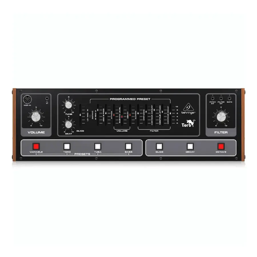 Behringer TORO, dört fabrika presetine (Toro, Tuba, Bass, Variable) sahiptir. Bunlardan “Variable” seçeneği, tüm kontrolleri serbest bırakır ve kullanıcıya tam yaratıcı özgürlük sağlar. Eurorack uyumlu yapısıyla masaüstü kasasından çıkarılıp standart Eurorack sistemlerine entegre edilebilir.