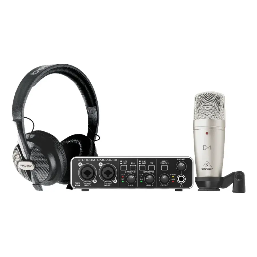 Notify me when its in stockThe U-Phoria Studio Pro Pack ships to your door with a desktop-friendly USB audio interface. The UMC202HD interface has two TRS-XLR inputs with +48 phantom power and is capable of recording studio-quality 24-bit/192 kHz audio resolution. This USB 2.0 device uses Midas-designed mic preamps to deliver clear, faithful recordings. Whether you're a budding producer, podcaster, or singer-songwriter, the U-Phoria UMC202HD interface will have no problem keeping up with you.