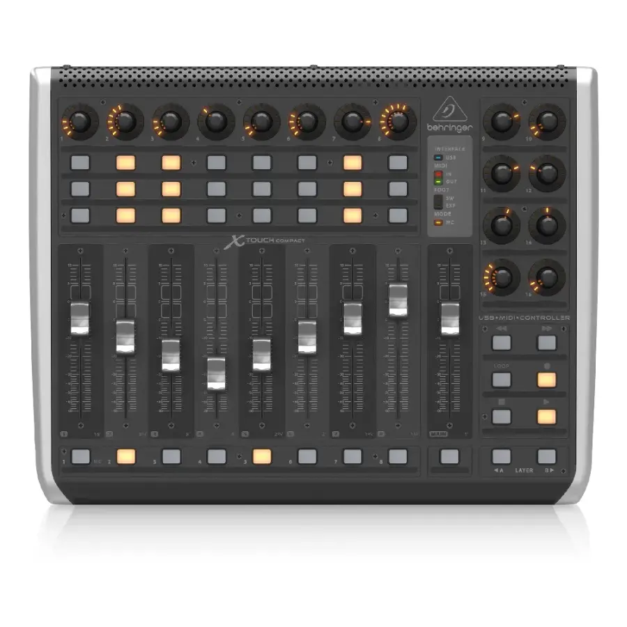 Gelince Haber VerBehringer X-TOUCH COMPACT, modern müzik prodüksiyonunda, sahne kullanımında ve ışık kontrolünde yüksek hassasiyetli kontrol sunan evrensel USB/MIDI kontrol ünitesi olarak tasarlanmıştır. DAW yazılımları, enstrümanlar, efektler ve ışık sistemleriyle tam uyumlu çalışan bu kompakt kontrolör, sezgisel yapısı ve geniş bağlantı seçenekleriyle profesyonel kullanıcıların vazgeçilmez yardımcılarından biridir.
