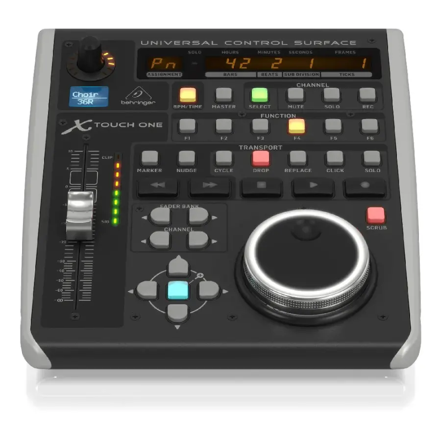 Notify me when its in stockThe X-TOUCH ONE from Behringer is a flexible DAW controller that is not only suitable for home studios, but also for live setups. It offers everything the heart desires and thus enables an optimal workflow: touch-sensitive, motorized faders and a dynamic LCD Scribble Strip, Rotary Encoder, 34 backlit buttons, 8-segment LED meters, a large jog/shuttle wheel with transport functions and more. To enable integration, the most commonly used protocols in the industry are used - i.e. everything runs smoothly and smoothly in combination with compatible DAWs, so that the focus is on what counts...the music!
