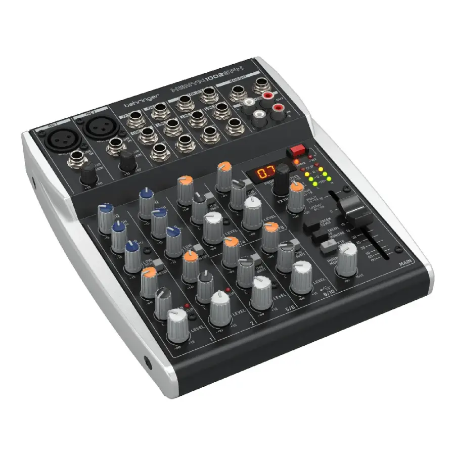 XENYX 1002SFX, hassas seviye ayarı sağlayan 2.4" master fader, panoramik denge kontrolleri ve kanal başına efekt yönlendirmeleriyle pratik bir miks deneyimi sunar. Küçük boyutu, sessiz çalışma özelliği ve geniş giriş/çıkış seçenekleriyle hem profesyonel hem de amatör kullanıcılar için ideal bir çözümdür.