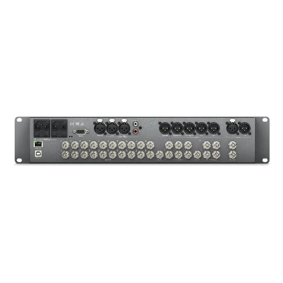 Standart 19” rack uyumlu, 2U form faktörüne sahip olan ATEM 4 M/E Broadcast Studio 4K, çift yedekli dahili güç kaynağı ile yayın sırasında maksimum güvenilirlik sağlar. İki bağımsız multiview çıkışı sayesinde kamera, preview ve program görüntülerini iki ayrı monitöre dağıtarak prodüksiyon akışını daha verimli şekilde yönetebilirsiniz.
