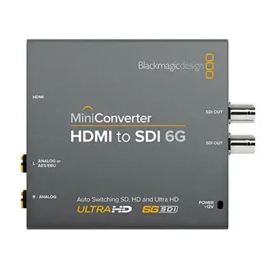 24-bit / 48 kHz ses örnekleme desteği ile HDMI üzerinden gelen ses veya analog / AES-EBU dijital ses girişleri doğrudan SDI çıkışına gömülebilir. Dahili mini anahtarlar veya macOS ve Windows uyumlu yazılım aracılığıyla ayarlar kolayca yapılabilir. USB 2.0 portu, firmware güncellemeleri için kullanılır. Dayanıklı metal kasası ve 12V evrensel güç adaptörü ile HDMI to SDI 6G Mini Converter, saha ve stüdyo kullanımına uygun profesyonel bir çözümdür.