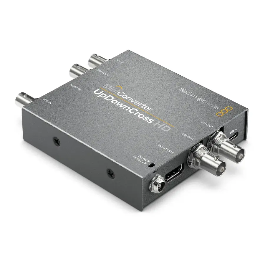 Blackmagic Design Mini Converter UpDownCross HD, yayın ve canlı prodüksiyon ortamlarında farklı SD ve HD video formatlarını otomatik olarak dönüştürmek için geliştirilmiş profesyonel bir up / down / cross converter çözümüdür. 1080p60’a kadar olan sinyalleri destekleyen bu kompakt cihaz, farklı çözünürlük ve kare hızları arasında sorunsuz geçiş sağlayarak karmaşık sistem entegrasyonlarını kolaylaştırır.