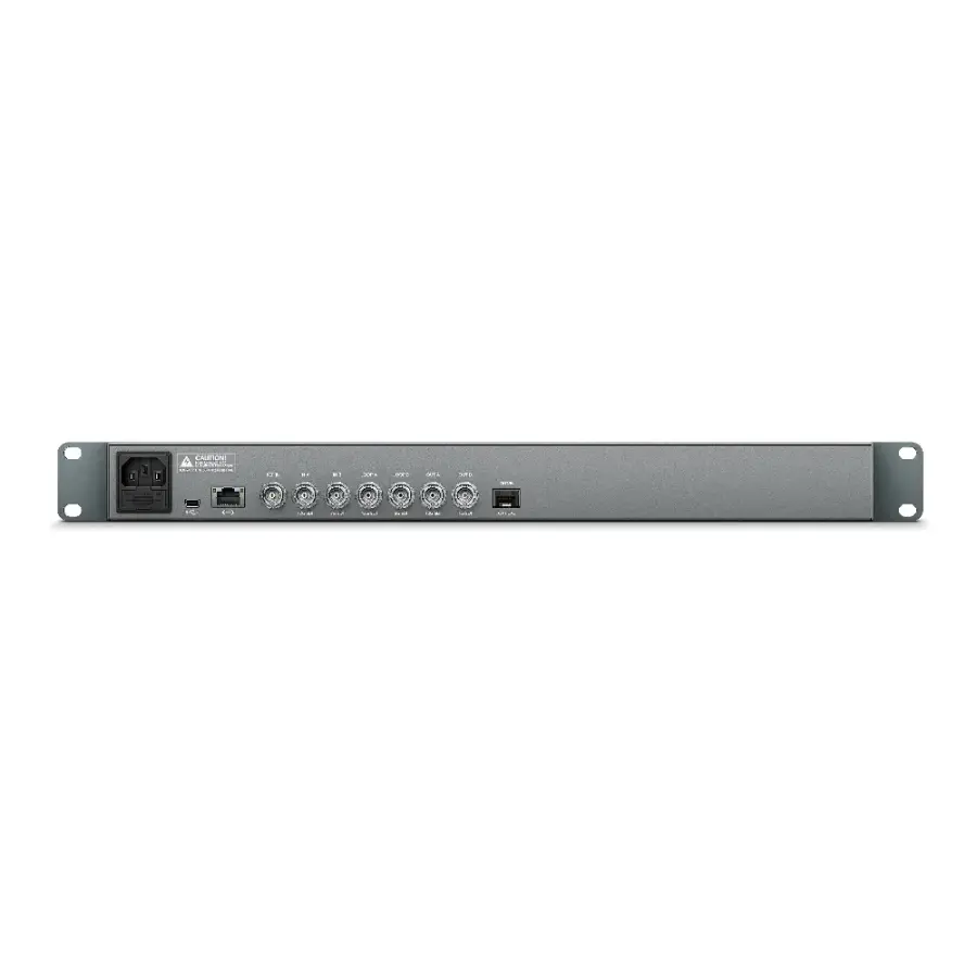 Timecode, closed caption (CEA-608 / CEA-708), AFD/WSS ve 16 kanala kadar gömülü SDI ses desteği ile yayın standartlarına tam uyum sağlar. Genlock referans girişi sayesinde harici kameralar ve genlock olmayan kaynaklar canlı prodüksiyon switcher’larına senkronize edilebilir. Dahili LCD ekran ve aydınlatmalı kontrol tuşları, tüm ayarların harici monitöre ihtiyaç duymadan hızlıca yapılmasına olanak tanır. 1U rack form faktörü ve dahili uluslararası güç kaynağı ile sahada ve stüdyoda güvenle kullanılabilir.
