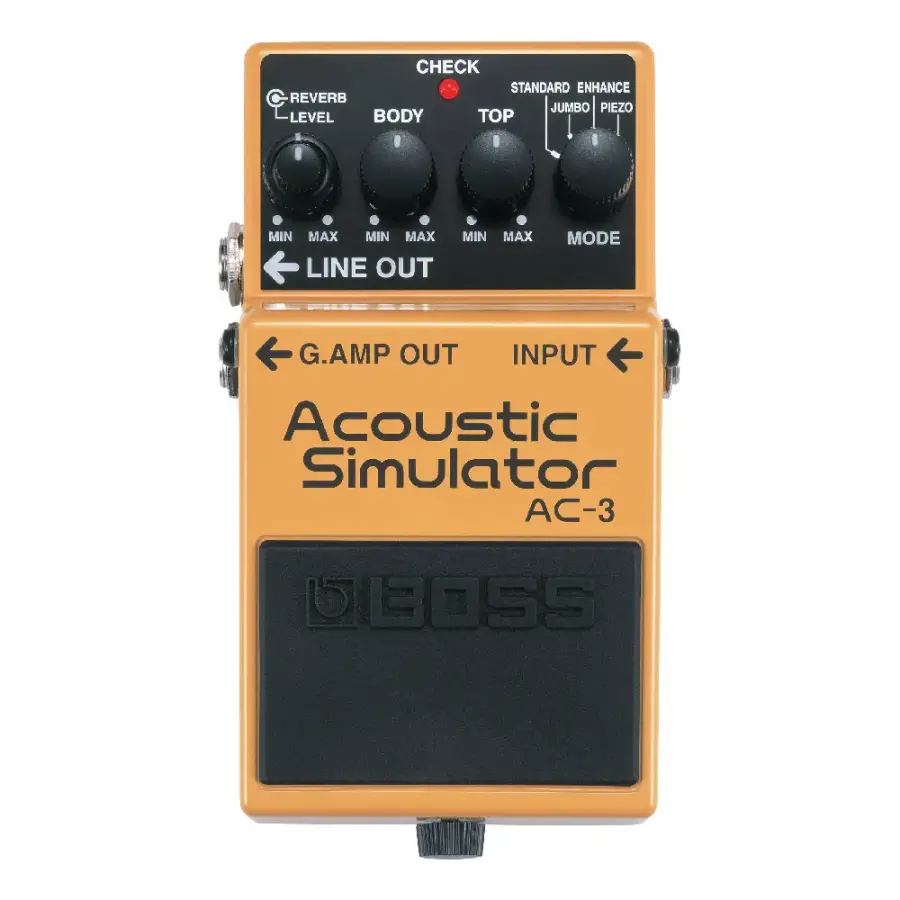 Pedal üzerinde yer alan Standard, Jumbo, Enhanced ve Piezo modları; farklı akustik gitar karakterlerini hızlı ve pratik şekilde elde etmeyi mümkün kılar. Top ve Body kontrolleri, sanal akustik gitarın üst kapak tepkisini ve gövde rezonansını ayarlayarak tonun doğal ve dengeli biçimde şekillendirilmesini sağlar. Dahili reverb efekti ise akustik simülasyonu daha gerçekçi ve dolgun hale getirir.