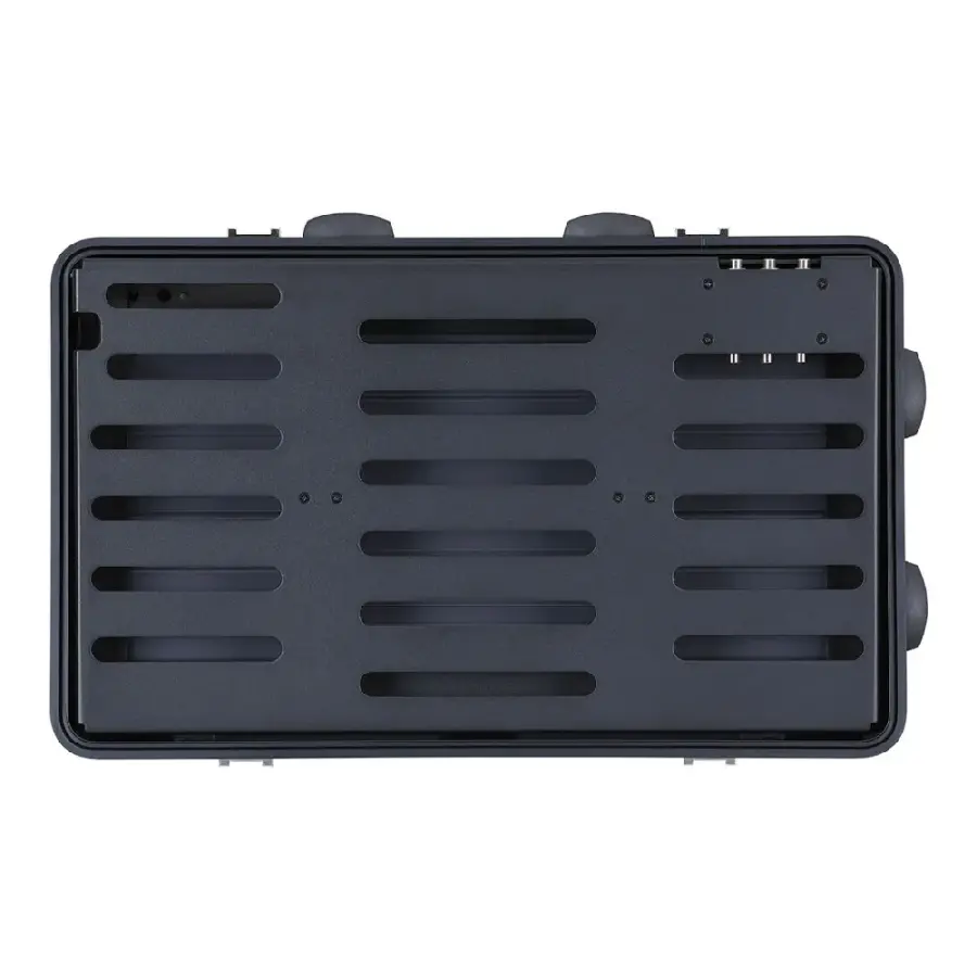 Dahili junction box sistemi sayesinde enstrüman girişi ile mono veya stereo çıkışlar arka panelden hızlıca bağlanabilir. Köpük kaplı kapak, dört adet kilit mekanizması ve kauçuk taban ayakları, hem pedallarınızı hem de sahne zeminini maksimum seviyede korur.