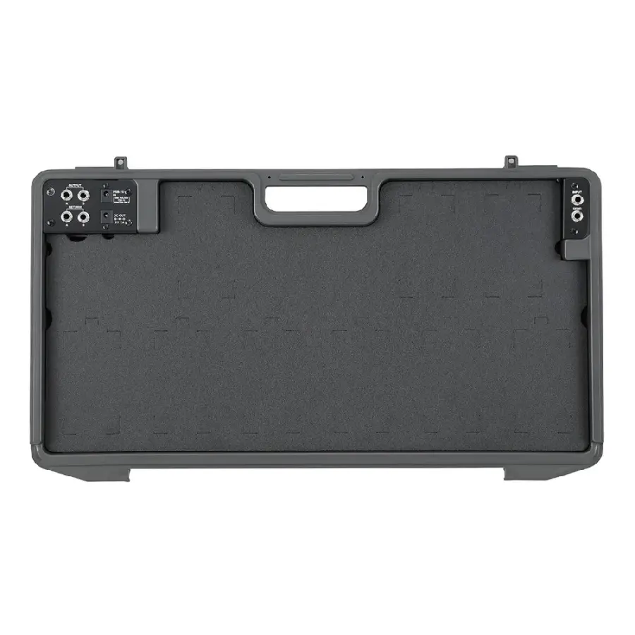 Insertin altında yer alan kablo kanalları ve boş alanlar, güç ve ses kablolarının gizlenmesini sağlayarak temiz ve düzenli bir görünüm oluşturur. Hafif ancak son derece sağlam kalıplı gövde, taşıma sırasında pedalları darbelere karşı korur. Kilitlenebilir ve hızlıca çıkarılabilen kapak tasarımı, kurulum süresini minimuma indirir. Alt kısımdaki kauçuk ayaklar ise zeminde kaymayı önler ve yüzeylerin çizilmesini engeller.