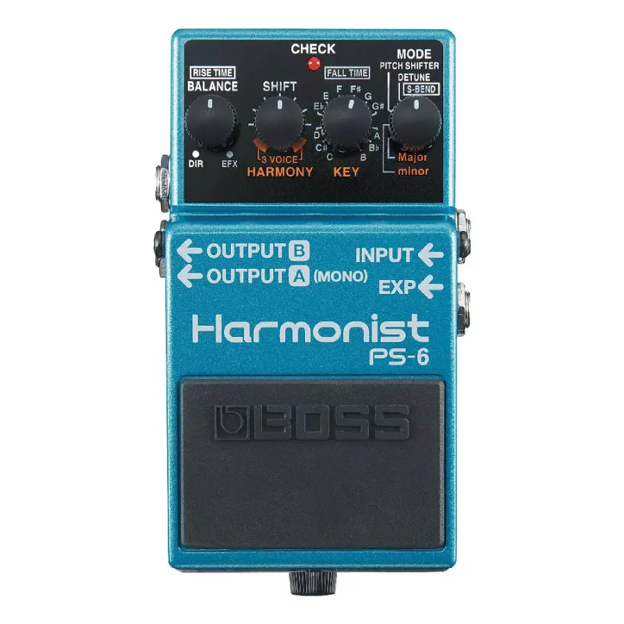 PS-6’nın Harmony modu, seçilebilir ton ve voicing seçenekleri sayesinde iki veya üç sesli armoniler oluşturulmasına imkân tanır. Tüm majör ve minör tonları destekleyen bu yapı, solo ve lead pasajlara derinlik kazandırmak için hızlı ve pratik bir çözüm sunar. Pitch Shifter modu ise yüksek doğrulukta pitch kaydırma işlemleri ile riff ve melodilerde özgün efektler elde edilmesini sağlar.