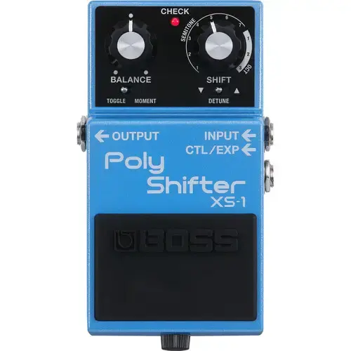 Altı oktav boyunca (üç oktav yukarı veya aşağı) akortu değiştirebilir veya kalın bir detuned ton için yedi yarım ton boyunca akortu ince bir şekilde ayarlayabilirsiniz. Detune modu, koro benzeri bir etki için daha fazla derinlik ve zenginlik sağlar. XS-1, bas frekanslarını ve polifonik perde kaydırmayı destekler. Balance düğmesi, mükemmel gitar veya bas tonu için ıslak/kuru karışımını ayarlamanıza olanak tanır. Toggle/Moment anahtarı, anlık veya kalıcı efekt modu arasında seçim yapmanızı sağlar. CTL/EXP jakı ile, aynı anda üç farklı akortu kontrol etmek için harici bir ayak pedalı bağlayabilir veya perde kaydırmayı gerçek zamanlı olarak kontrol etmek için bir ifade pedalı kullanabilirsiniz. XS-1 Poly Shifter, 9V pil içerir.