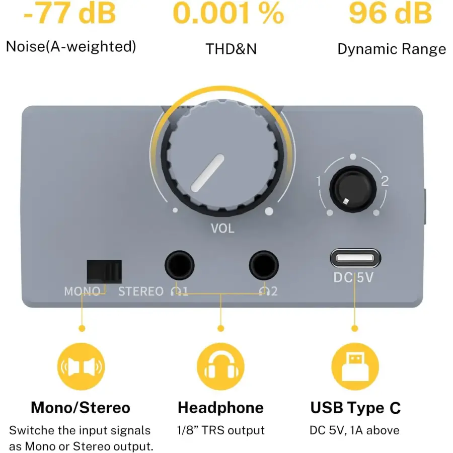 Pratik Arayüz - Bu kulaklık amfisi, kilitleme mekanizmalı XLR ve TRS giriş konektörüne ve kablo bağlantısına bağlı olarak stereo/mono kaynak anahtarına sahiptir. İki bağımsız kulaklık çıkışı, iki çift kulaklıkla aynı anda kullanılabilir. Mono/Stereo anahtarı, farklı giriş sinyallerine göre görüntüyü ayarlar. Mix, iki dengeli girişin seviye oranını ayarlar.