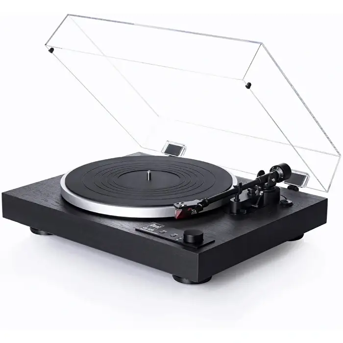 Stereo sisteminiz ve siyah vinil kaplama Dual Electronics CS 429 Tam Otomatik Üç Hızlı Döner Tabla ile 33 1/3, 45 ve 78 rpm vinil kayıtlarınızın keyfini çıkarın. Döküm alüminyum tabla ve Ortofon 2M Kırmızı kartuşlu sağlam alüminyum kola sahiptir. Döner tabla, dahili değiştirilebilir ön amplifikatörü sayesinde hemen hemen her ses sistemiyle çalışan topraklama vidalı bir stereo RCA çıkışına sahiptir. Tam otomatik veya tam manuel çalışma arasında geçiş yapabilirsiniz. İlave kolaylık olarak menteşeli bir toz kapağı dahildir.