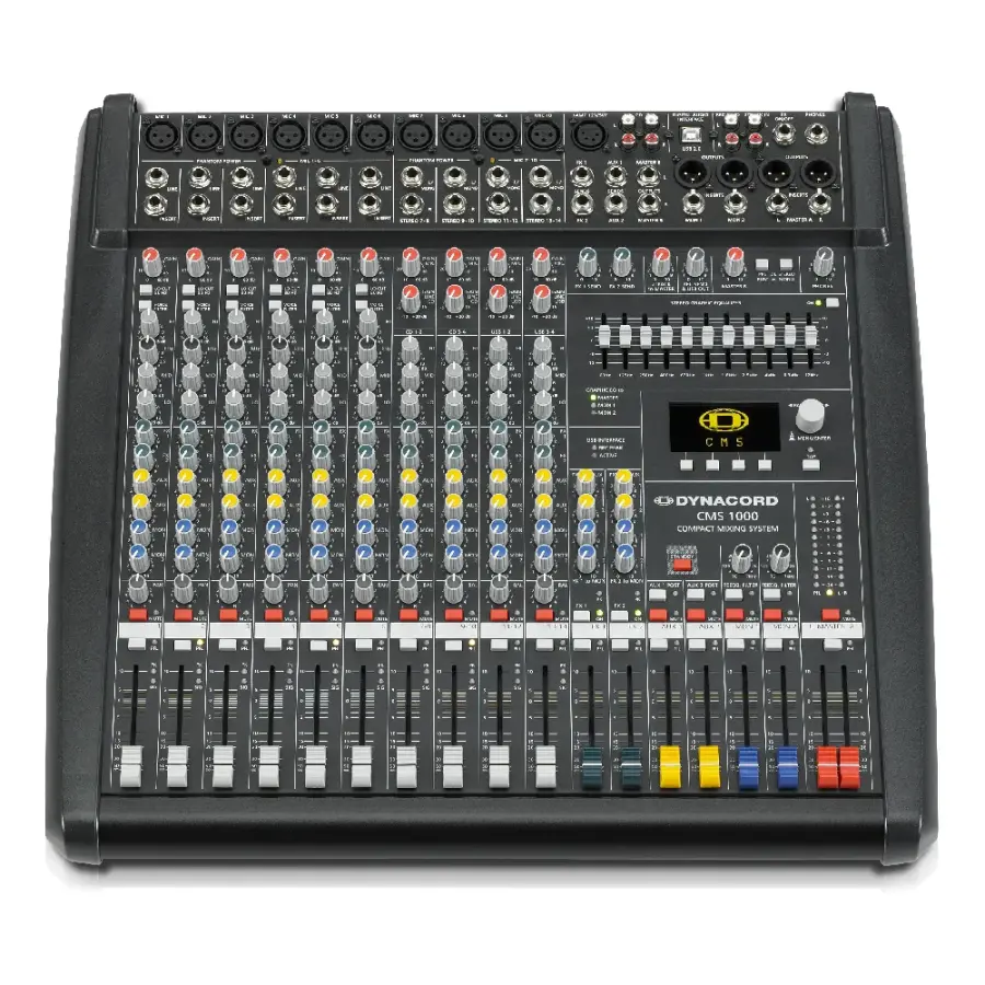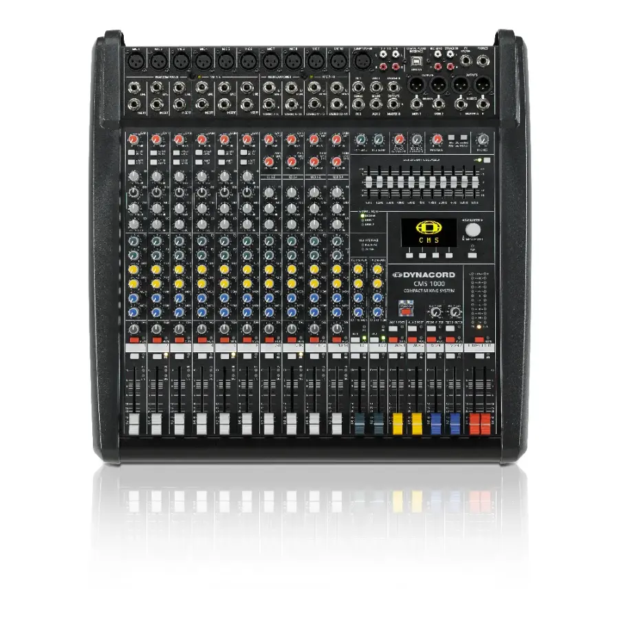 Dynacord CMS 1000-3, profesyonel sahne, canlı performans ve sabit kurulum uygulamaları için geliştirilmiş kompakt ve yüksek performanslı bir analog mikser sistemidir. Entegre 24-bit Dual Stereo efekt işlemcisi ve dahili 4 giriş / 4 çıkış USB 2.0 dijital ses arayüzü sayesinde hem canlı seslendirme hem de çok kanallı kayıt uygulamalarında eksiksiz bir çözüm sunar.