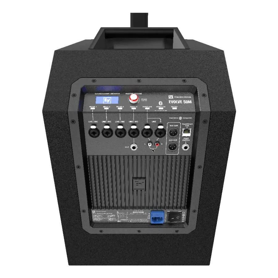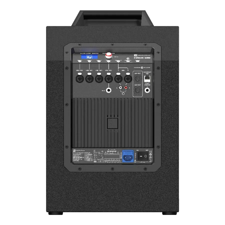 Electro-Voice EVOLVE 50M, yüksek çıkış gücü ve entegre dijital mikser özellikleri ile profesyonel sahne ve etkinlik uygulamaları için tasarlanmış taşınabilir aktif kolon ses sistemidir. 1000 Watt Class-D amplifikatör gücü (500 W subwoofer + 500 W kolon) ve 127 dB maksimum SPL değeri ile canlı performanslar, DJ etkinlikleri ve kurumsal organizasyonlarda güçlü ve dengeli ses performansı sunar.