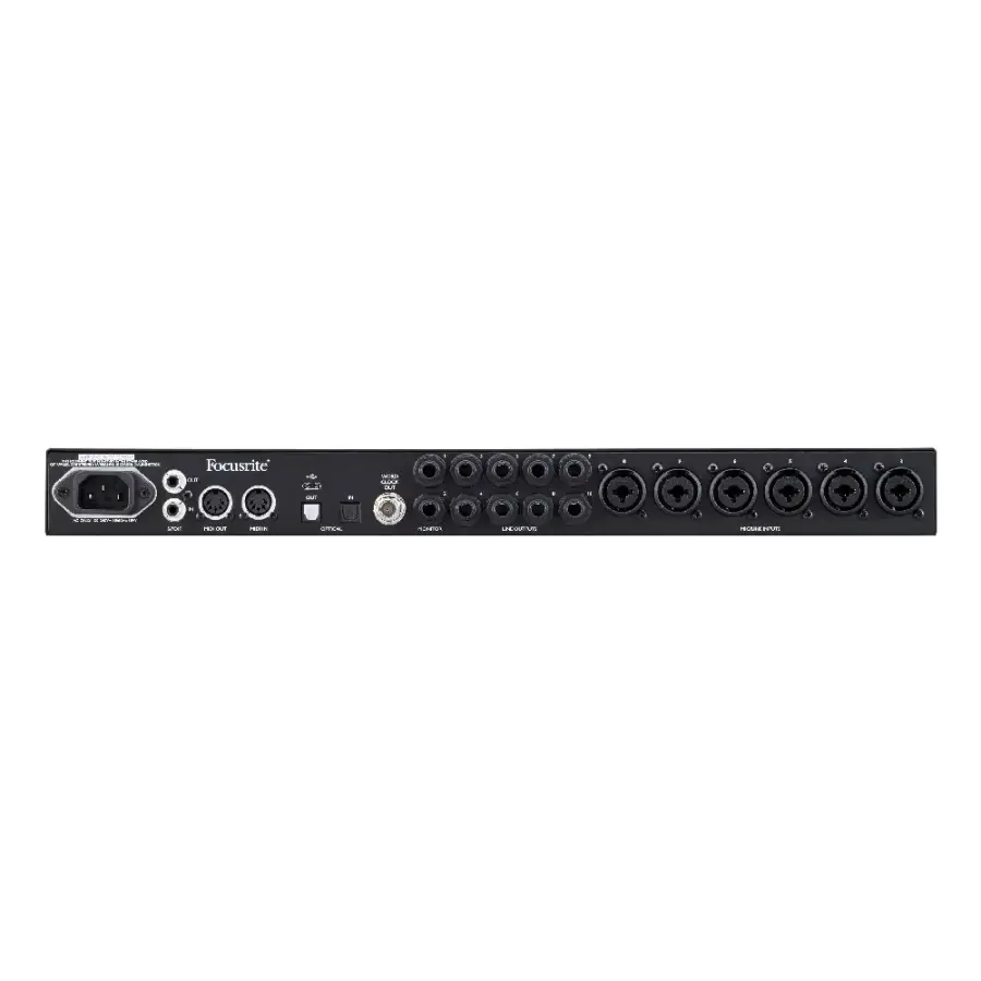 In addition to the eight mic/line preamps (two with Hi-Z capability), the interface offers ADAT and S/PDIF I/O for digital input and output expansion, MIDI I/O for integration of MIDI equipment such as a keyboard or drum machine, and a BNC wordclock output for syncing other digital gear. Stereo monitor outputs, two headphone outs, and eight line outputs let you properly hook up monitors, headphones, and outboard processors. The Clarett+ 8Pre includes a software package featuring Focusrite Red plug-ins and a channel strip that accurately models the rare Focusrite Studio Console. Also provided is the Focusrite Control software that enables you to configure routing and monitor mixes from Mac and Windows computers, or iPad, iPhone, and iPod touch mobile devices.