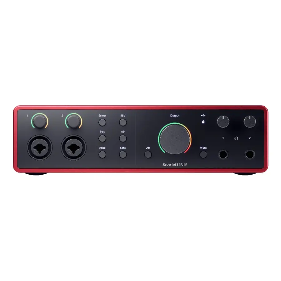 Scarlett 16i16; 2 mikrofon/hat/enstrüman girişi, 4 hat girişi, 4 hat çıkışı, 2 kulaklık çıkışı, ADAT ve S/PDIF dijital giriş/çıkışlar ile MIDI I/O bağlantılarına sahiptir. Focusrite Control 2 yazılımı sayesinde miksler, yönlendirmeler ve monitörleme ayarları kolayca yapılabilir. Standalone mod desteğiyle bilgisayara ihtiyaç duymadan giriş ve çıkışlar arasında sinyal aktarımı yapılabilir.