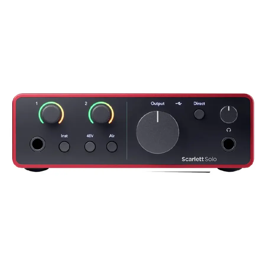 The 4th-gen Focusrite Scarlett Solo gives songwriters plenty of reasons to upgrade their previous-generation interface, such as an updated mic preamp, RedNet-derived AD/DA conversion, Auto Gain and Clip Safe features, Dynamic Gain Halos, and more. This 2-in/2-out USB-C audio interface includes a guitar-friendly hi-Z input, a custom-designed headphone amp, loopback, and Focusrite's acclaimed Air Mode. Beginners will appreciate Focusrite's Easy Start tool. You also get a sizable cache of included software, giving you everything you need to record, mix, and master your music. Add to that the Scarlett Solo's premium build quality, and you get a near-bulletproof studio solution that's great for beginners and seasoned recordists alike. The Focusrite Solo remains best seller for recording songwriters and musicians, and the 4th generation's powerful new features make it the most value-packed Solo yet.