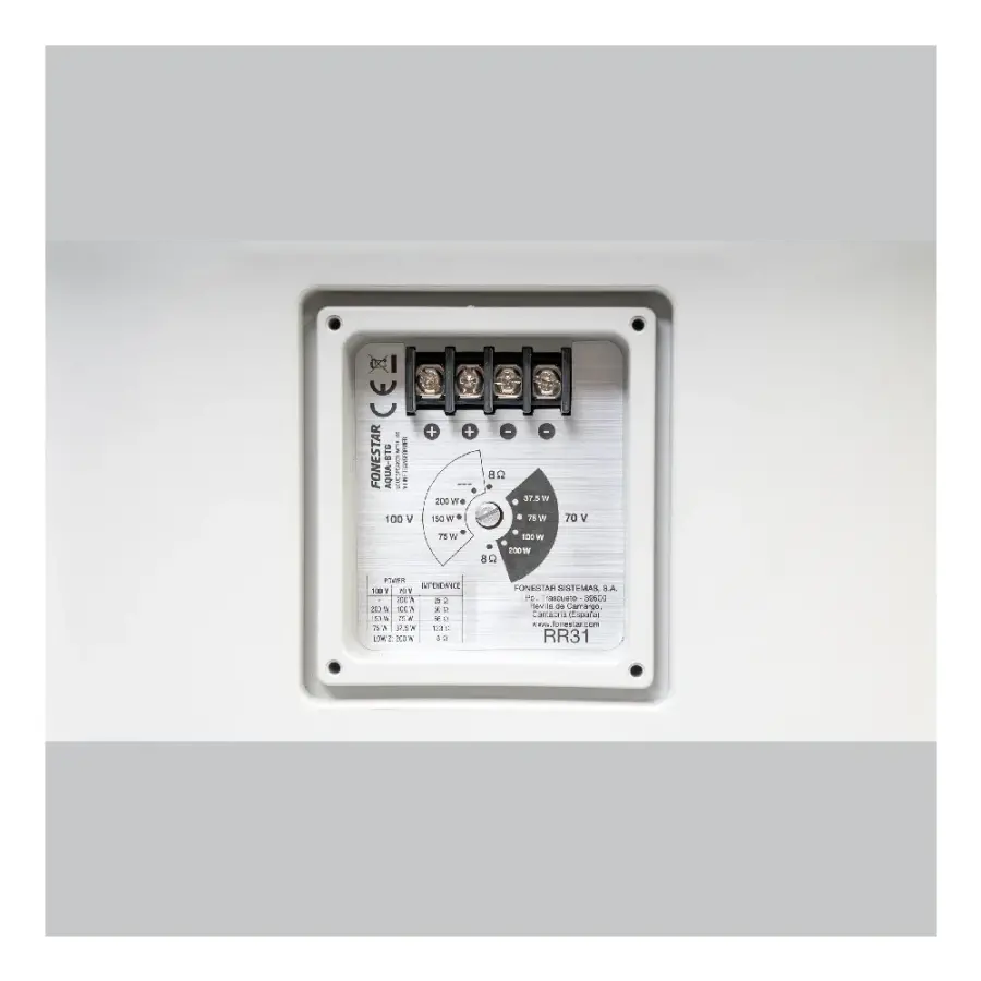 Fonestar AQUA-8TG, hem 100V hat transformatörü hem de 8Ω düşük empedans desteği sunan, yüksek güçlü bir dış mekân hoparlörüdür. Fonestar’ın ses teknolojilerindeki deneyimini yansıtan AQUA serisi, anons sistemleri, müzik yayını ve arka plan ses uygulamaları için özellikle büyük açık alanlarda kullanılmak üzere geliştirilmiştir.