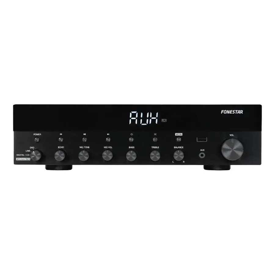 330 x 92 x 276 mm kompakt boyutları, 4.2 kg ağırlığı ve kutu içeriğinde yer alan FM anten kablosu ile uzaktan kumandası sayesinde Fonestar AS-6060, ev ortamından restoran ve ticari işletmelere kadar farklı mekânlarda yüksek kaliteli ses çözümleri sunar.