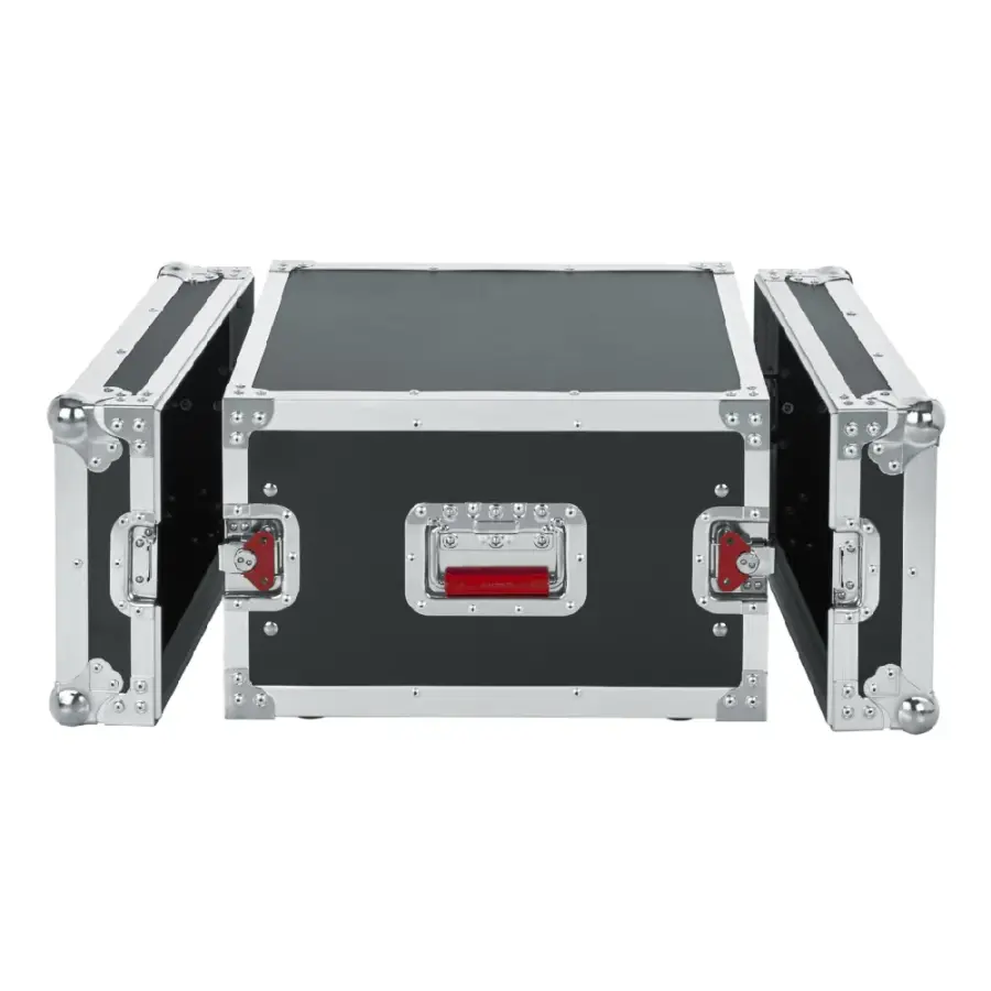 Kırmızı gömme döner kilitler ve yaylı, kauçuk tutma yüzeyine sahip taşıma kulpları, taşıma sırasında güvenli ve kontrollü bir kullanım sunar. Ticari sınıf kaplamalı metal donanım ve güçlendirilmiş küresel köşe korumaları, yoğun yükleme ve boşaltma süreçlerinde kasanın yapısal bütünlüğünü korur.