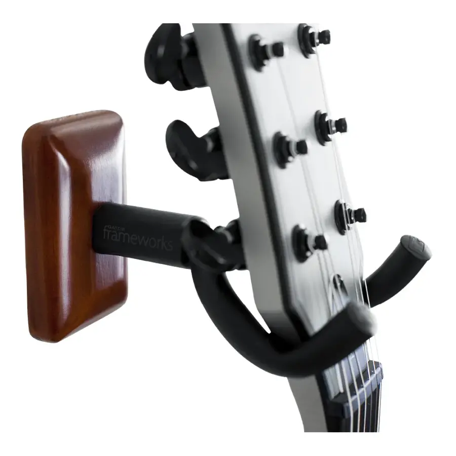 Gelince Haber VerGator Frameworks GFW-GTR-HNGRMHG, elektro, akustik ve bas gitarların duvara güvenli ve estetik biçimde asılması için tasarlanmış profesyonel bir gitar askısıdır. Maun kaplamalı dekoratif duvar plakası, sıcak ve doğal bir görünüm sunarak ev, stüdyo ve sahne arkası uygulamalarında şık bir sergileme çözümü oluşturur.