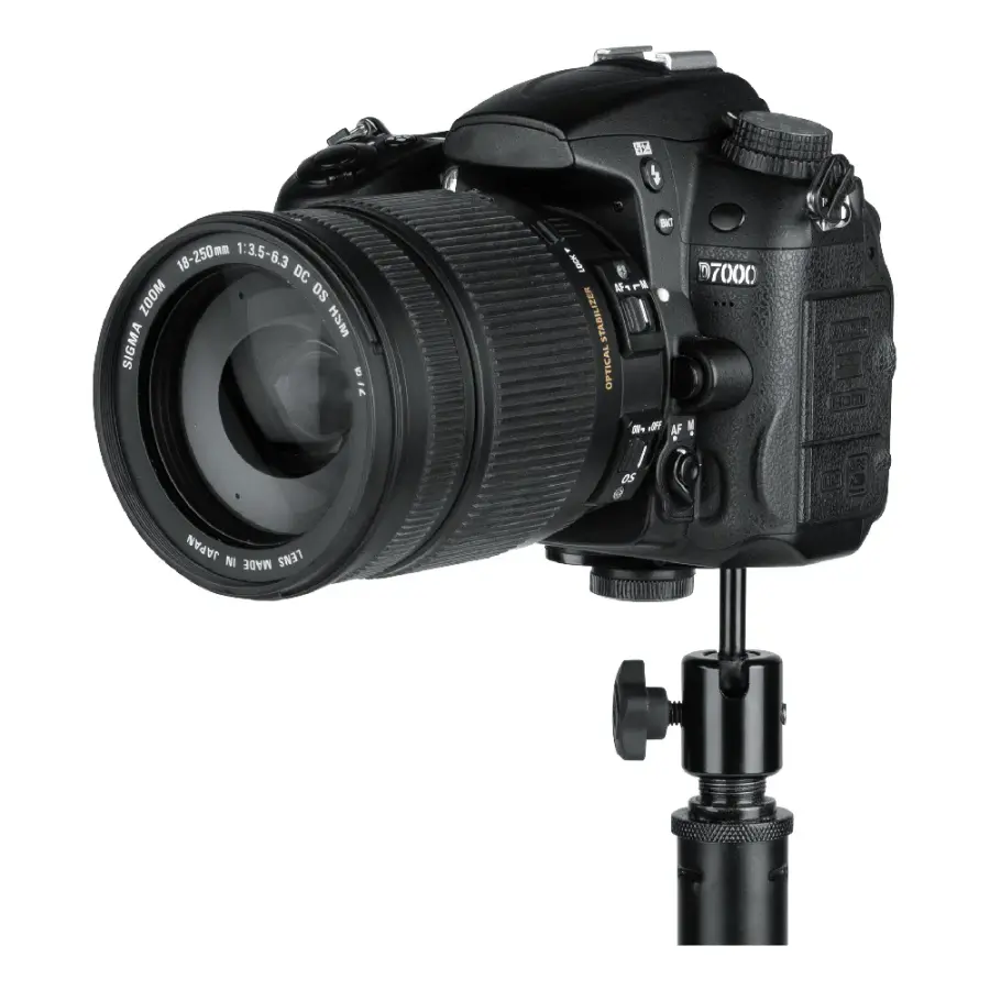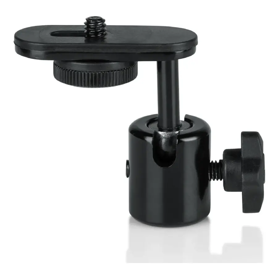 5/8-27 dişi mikrofon standı dişi ile 1/4-20 erkek kamera vidası arasında dönüşüm sağlayan bu adaptör, standart mikrofon standları ile fotoğraf ve video ekipmanlarının birlikte kullanılmasına imkân tanır. 360 derece dönebilme ve 180 derece eğilebilme özelliği sayesinde kamera, istenilen açıya hassas biçimde ayarlanabilir.