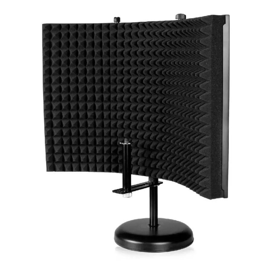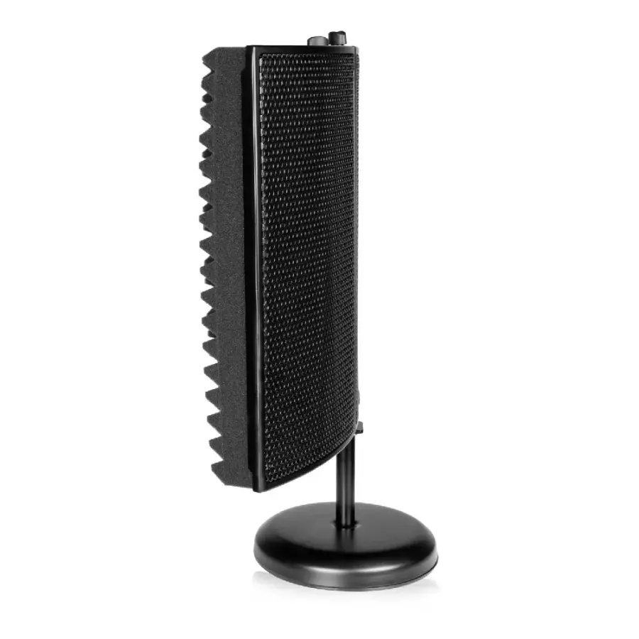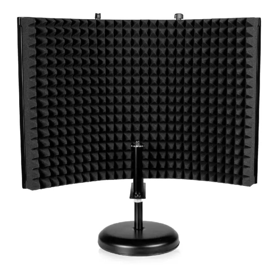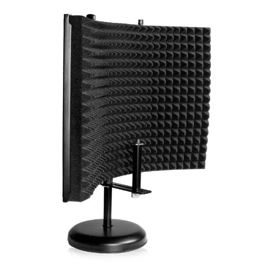 12 × 16 inç ölçülerindeki akustik köpük kaplı panel, mikrofonun arkasını ve yanlarını çevreleyerek oda yansımalarını minimize eder. Bu yapı özellikle akustik düzenlemesi sınırlı ev ve proje stüdyolarında vokal netliğini belirgin şekilde artırır.