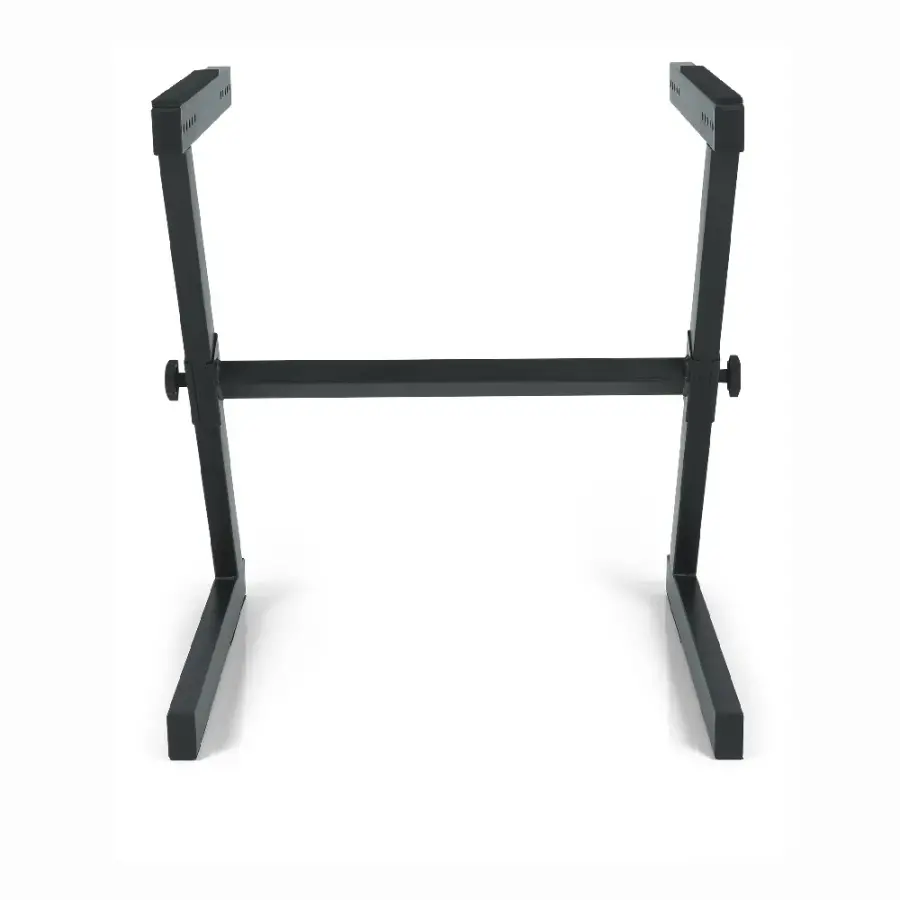 Siyah toz boyalı kare alüminyum boru konstrüksiyonu, hem hafiflik hem de dayanıklılık sunar. 90,72 kg taşıma kapasitesi ile ağır klavye ve miks ekipmanlarıyla güvenle kullanılabilir. Ön–arka derinliği, klavye ve mikser yerleşimi için dengeli bir çalışma alanı sağlar.