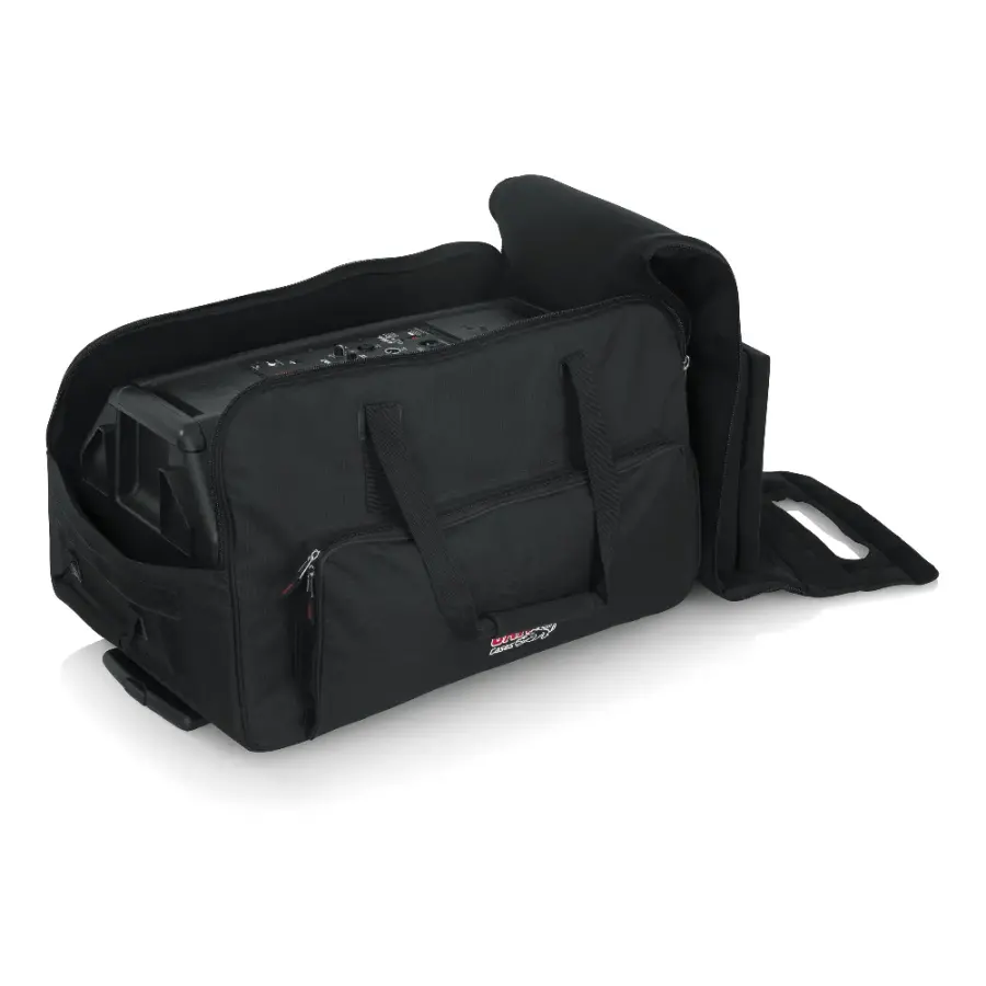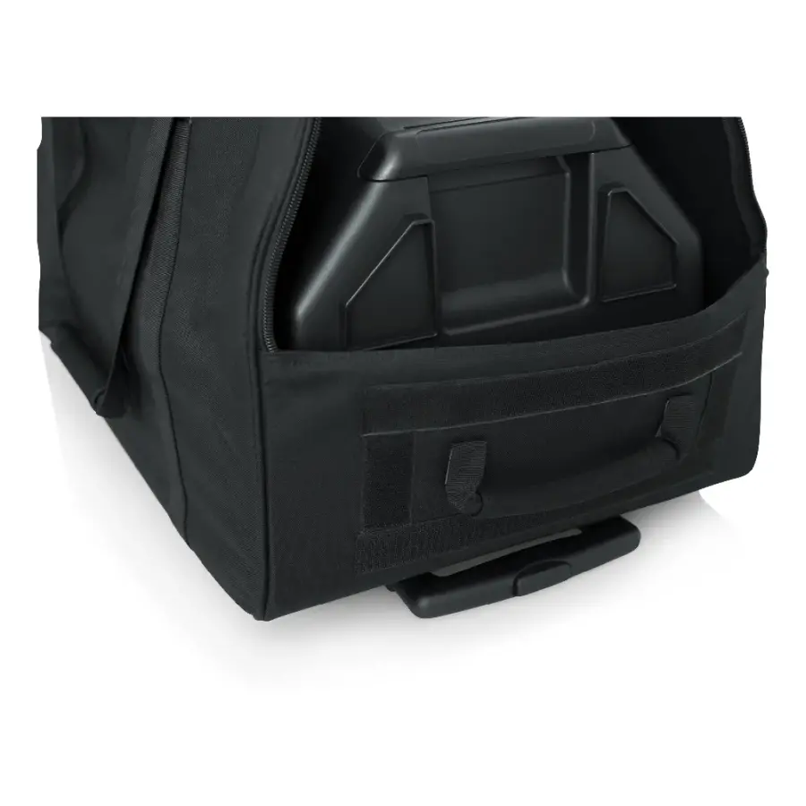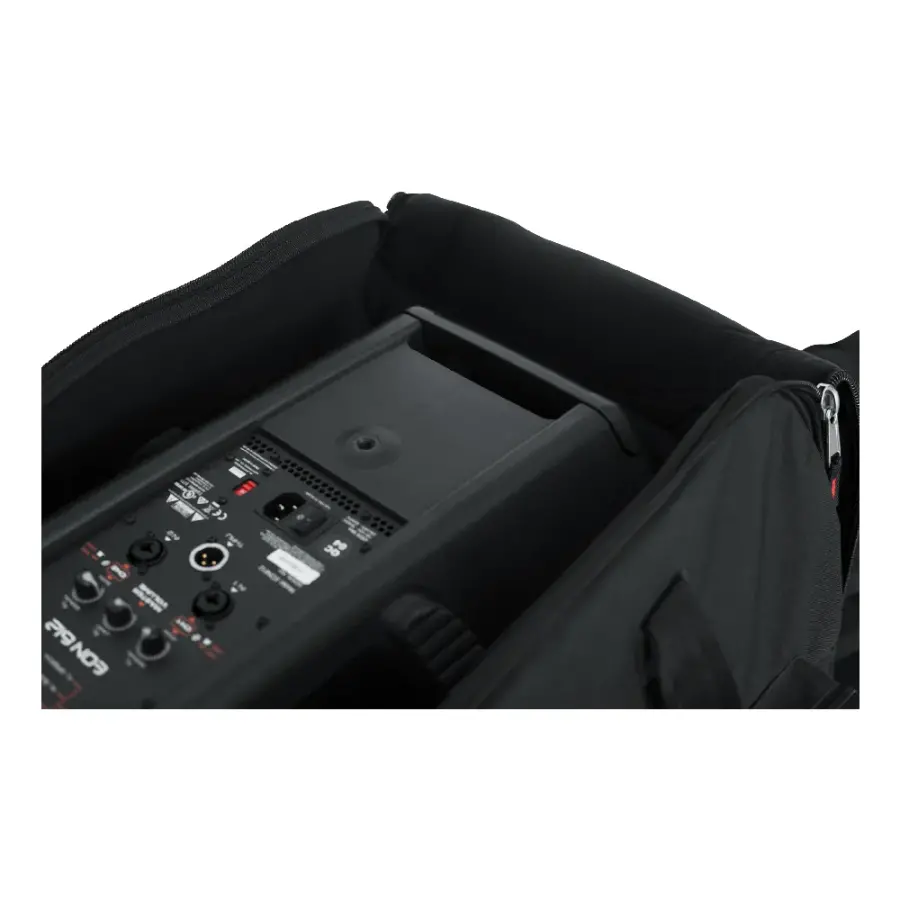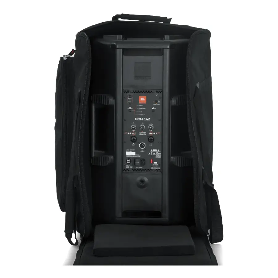Çantanın çift fermuarlı tasarımı, hoparlörün çantaya yerleştirilmesini ve çıkarılmasını hızlandırır. Alt bölümde yer alan şekillendirilmiş yapılandırılmış köpük, hoparlörün tabanını kavrayarak taşıma esnasında kaymayı azaltır. Yan panellerde kullanılan 10 mm köpük destek, darbeleri emerek kabin yüzeyinin çizilme riskini düşürür. Uzun mesafeli taşımalarda kolaylık sağlayan çekçek sapı ve tekerlekler, tek kişiyle taşımayı pratik hâle getirir.
