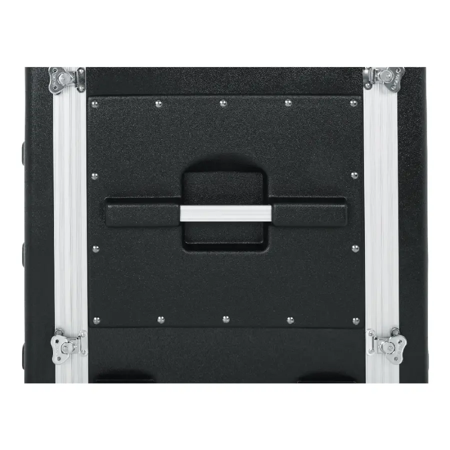 Kabin üzerinde bulunan ağır hizmet tipi kilitlenebilir döner mandallar, taşıma sırasında kapağın güvenle kapalı kalmasını sağlar. Gömme yan taşıma kulpları, sahne ve araç yüklemelerinde ergonomik taşıma imkânı sunar. 19,25 inç rack derinliği, derin yapılı profesyonel ekipmanlarla uyumlu çalışacak şekilde tasarlanmıştır.
