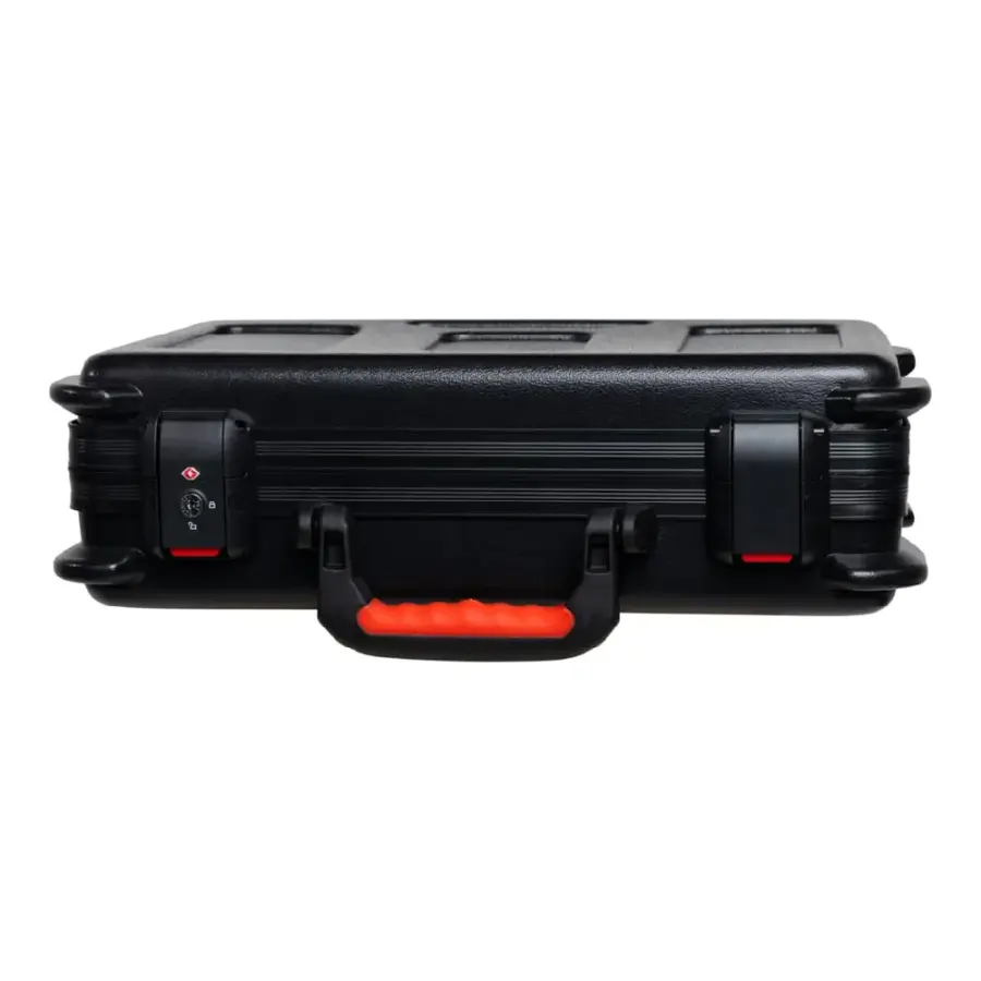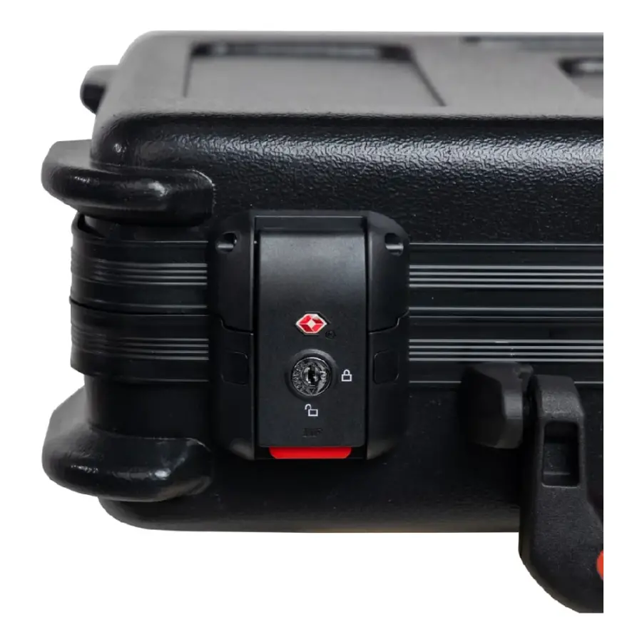 Dayanıklı ABS dış gövde, siyah valans yapısı ve hızlı açılabilen mandalları ile hem sağlamlık hem de pratik kullanım sunar. TSA tarafından kabul edilen kilitli mandal sistemi, havaalanı güvenlik kontrollerinde sorunsuz geçiş sağlarken ekipman güvenliğini üst seviyede tutar.