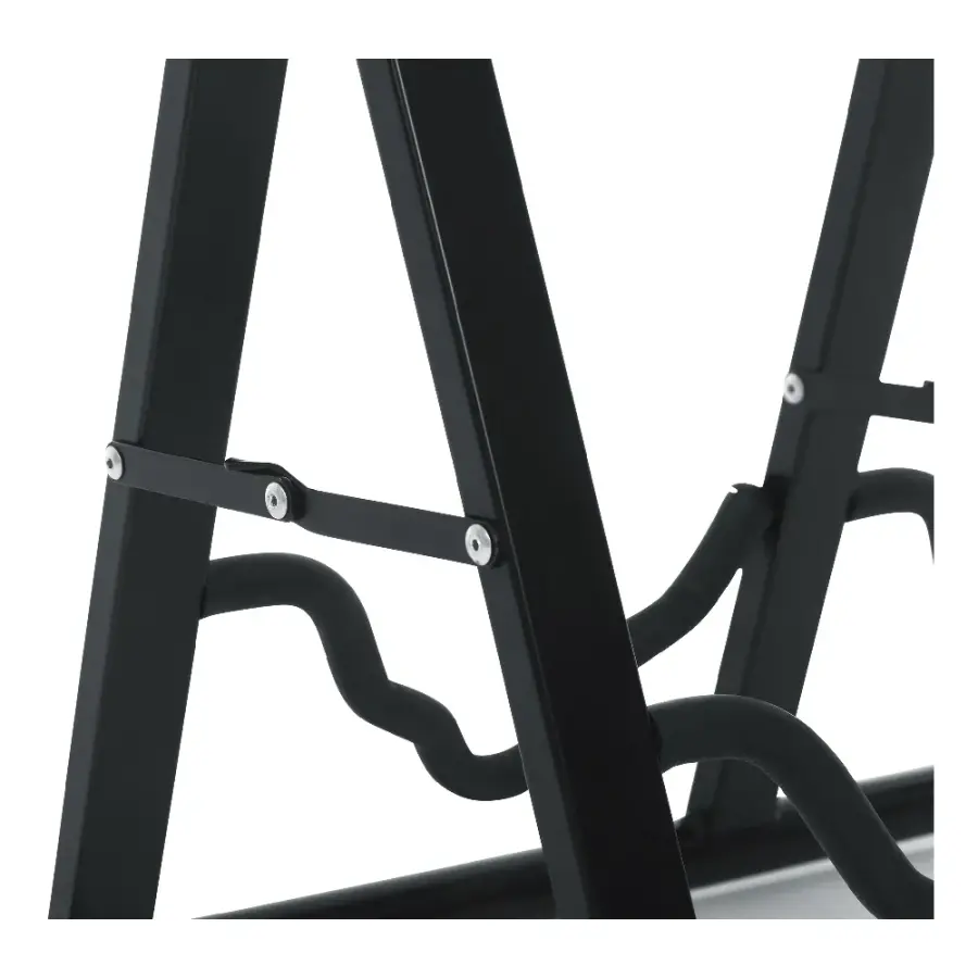 Çiftli A-frame tasarımı, iki gitar için ayrı park alanı sunarken, kilitlenebilir stand kolları gitarların stand üzerinde sabitlenmesini sağlayarak devrilme riskini azaltır. Yumuşak kaplamalı ve yüzey dostu destek kolları, gitar gövdesi ve sapının çizilmeden güvenle desteklenmesine yardımcı olur.