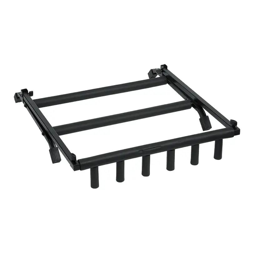Ağır hizmet tipi çelik konstrüksiyon ve siyah toz boya kaplama, standın yoğun kullanımlarda dahi formunu korumasını sağlar. Enstrümanla temas eden tüm destek noktalarında kullanılan köpük pedleme, gitar gövde ve saplarını çizilmelere ve sürtünmelere karşı korur. Katlanabilir tasarım, kullanım dışı zamanlarda standın pratik şekilde kapanarak taşınmasını ve depolanmasını kolaylaştırır.