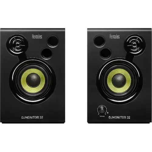 Hercules DJMonitor 32 - 3" Aktif Multimedya Hoparlörler (Çift) Hercules DJMonitor 32 Aktif Multimedya Hoparlörler çift olarak satılmaktadır ve DJ monitörleme uygulamaları, proje stüdyo kayıtları, dizüstü bilgisayar ses sistemleri, oyun konsolları ve daha birçok uygulama için uygundur. DJMonitor 32'nin tasarımı, pasif sol hoparlöre bağlanan aktif bir sağ hoparlör kullanır. Dahili amplifikatör, 3" woofer ve tweeter'a 60W (tepe) güç sağlar ve bu da 60 Hz ila 20 kHz frekans tepkisi sunar. MDF kasa, gelişmiş bas tepkisi için havalandırmalıdır. Sol hoparlörün arkasında güç fişi, stereo RCA girişleri ve sağ uydu hoparlörü bağlamak için terminal bloğu bulunur. Aktif hoparlörün önünde ses kontrolü bulunur. Hercules DJMonitor 32, bir uydu bağlantı kablosu ve bir güç kablosu içerir.