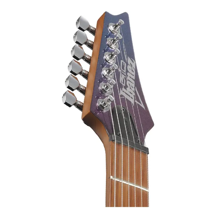 Akçaağaç sap ve GRG profilli yapı, rahat tutuş ve stabilite sağlarken 25,5 inç mensur uzunluğu standart akortlarda ideal tel gerginliği sunar. Jatoba klavye, zengin orta frekanslar ve net üst frekanslarla dengeli bir tonal yapı oluşturur. Sharktooth klavye işaretleri, RG serisine özgü modern ve agresif görünümü tamamlar.
