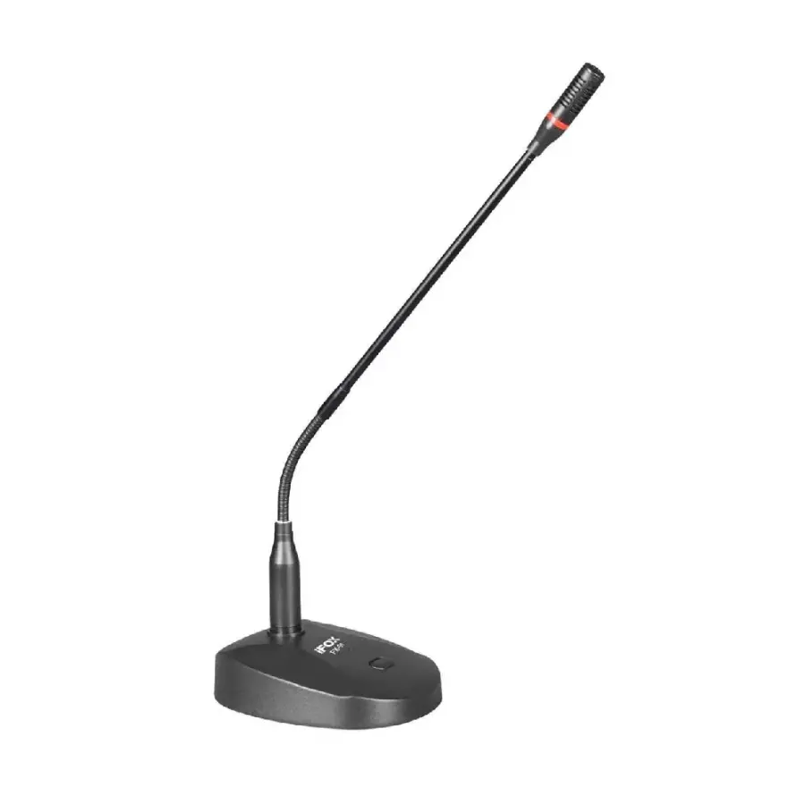 iFOX FX-51, toplantı salonları, konferans merkezleri, eğitim kurumları ve resmi konuşma alanları için tasarlanmış profesyonel bir kablolu kürsü mikrofonudur. Net ve anlaşılır konuşma aktarımı sağlayan yapısı, konuşmacının sesini doğal ve berrak bir şekilde ileterek iletişim etkinliğini artırır.
