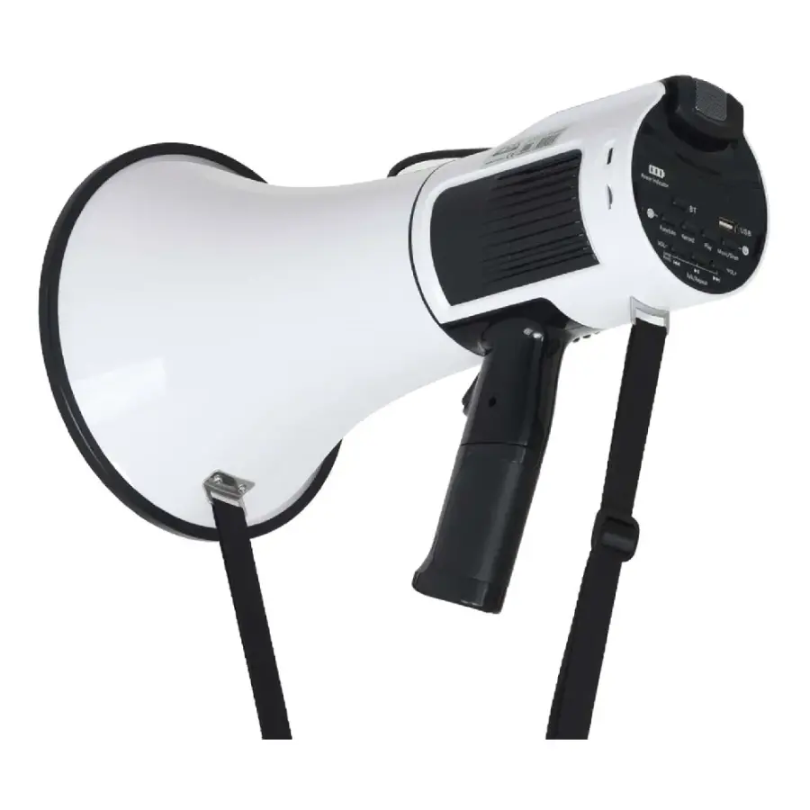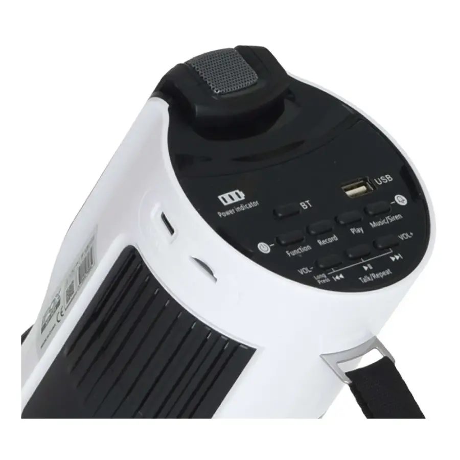 iFOX XF-101 Mikrofonlu Megafon, yüksek ses gücü ve modern bağlantı seçenekleriyle profesyonel duyuru, organizasyon ve güvenlik uygulamaları için tasarlanmıştır. 100 Watt maksimum güç kapasitesiyle geniş alanlarda güçlü ve net bir ses performansı sunar. USB, Bluetooth ve SD kart desteği sayesinde çeşitli kaynaklardan ses çalma imkânı sağlar. Dahili siren fonksiyonu acil durumlarda etkili uyarı verirken, 300 saniyelik kayıt süresi ile mesajlarınızı önceden kaydedip gerektiğinde tekrar çalabilirsiniz. 2000mAh lityum pili uzun çalışma süresi sunarken, 7.4V güç kaynağıyla kesintisiz performans sağlar. 380x210 mm boyutlarıyla taşınabilir ve ergonomik tasarımı, açık alan etkinlikleri, okul anonsları ve saha duyuruları için ideal bir çözüm sunar.
