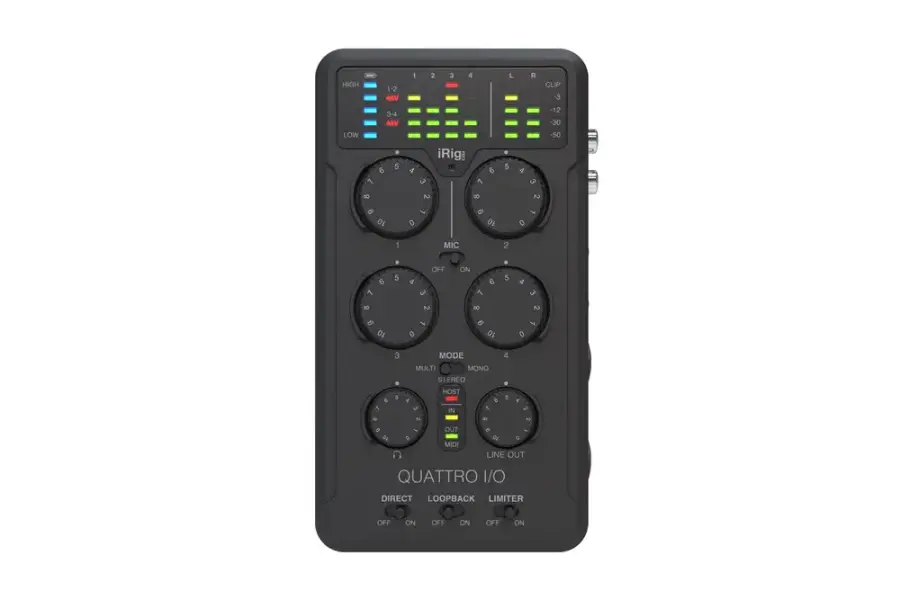 iRig Pro Quattro I/O, her seviyeden müzisyen, içerik oluşturucu ve podcastçinin ihtiyaç duyduğu her şeyi sunan, profesyonel düzeyde 4 girişli/2 çıkışlı taşınabilir ses ve MIDI arayüzüdür. Pristine alan kaydı, içerik oluşturma, akış, podcasting ve performans için her şeye sahip olan iRig Pro Quattro I/O, sizi her yerde harika sesler yaratmaya hazırlar.